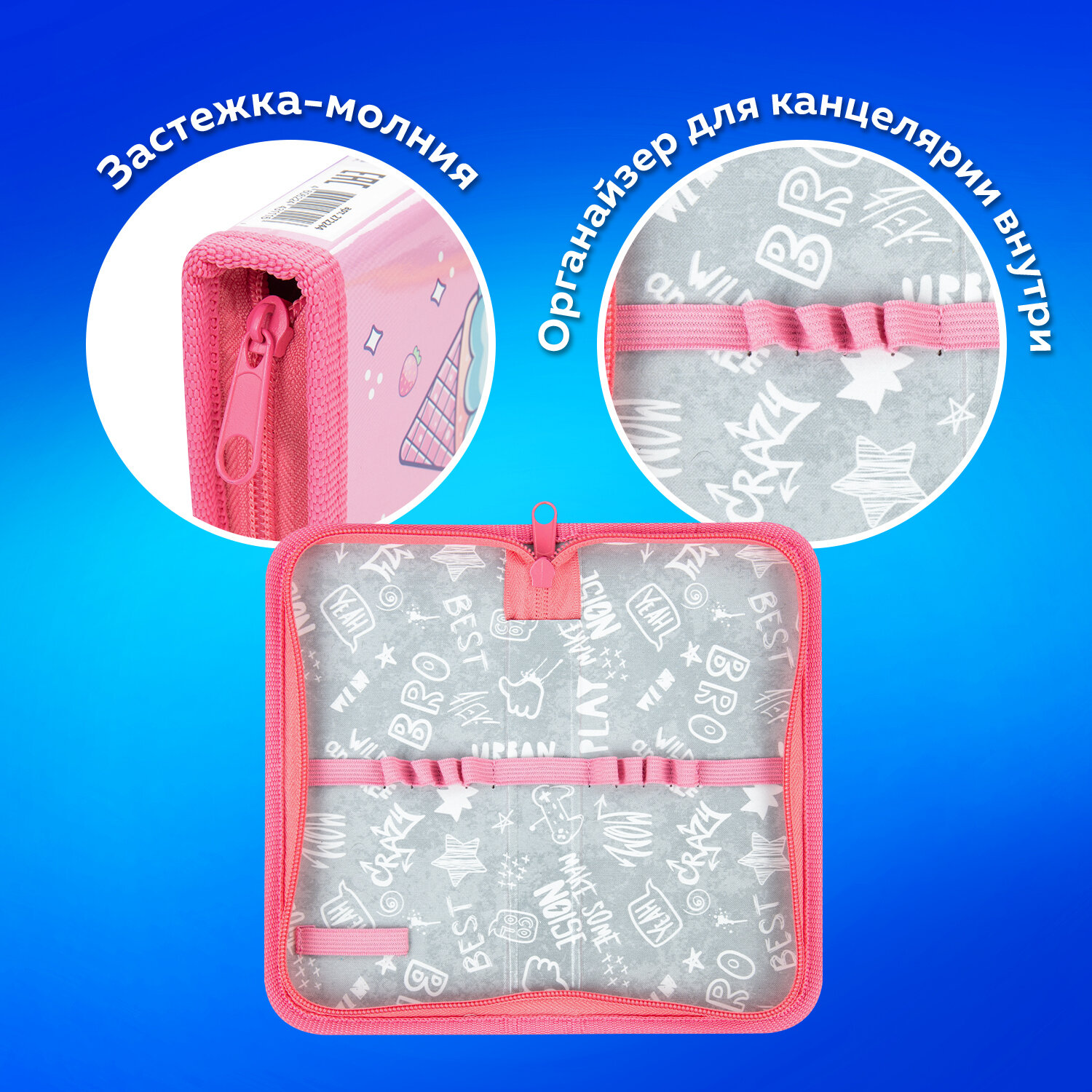Основа пенала – плотный ламинированный картон, обшитый тканью по краям. Такая конструкция отличается износостойкостью и прочностью, поможет защитить канцелярские принадлежности от повреждений.
