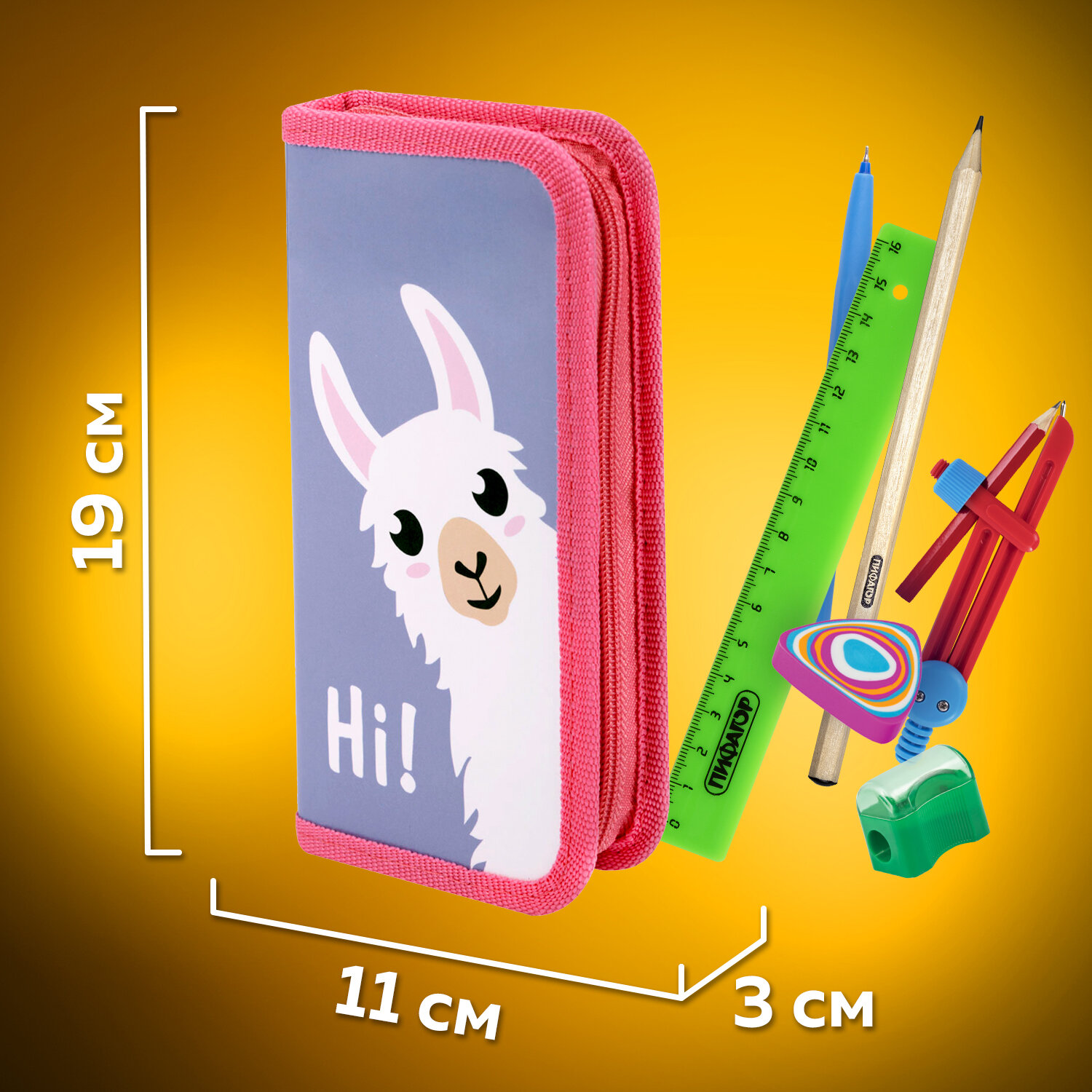 Пенал ПИФАГОР, 1 отделение, ламинированный картон, 19х9 см, "Llamaste", 271505