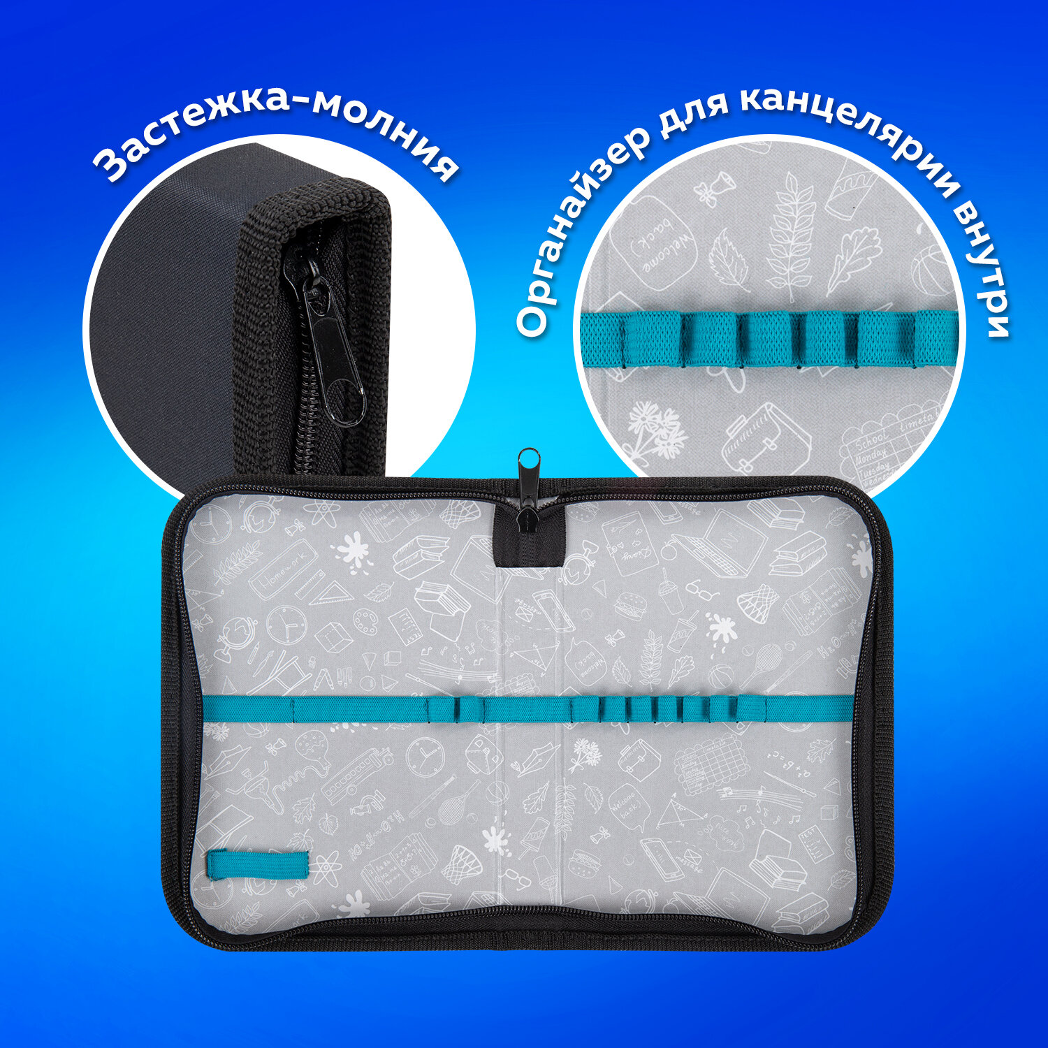 Материал пенала – полиэстер с цветной печатью и ярким дизайном. Основа пенала – плотный картон, обшитый тканью по краям. Такая конструкция отличается износостойкостью и прочностью, поможет защитить канцелярские принадлежности от повреждений. Внутри пенала на каждой створке прочные резинки для канцелярских принадлежностей, внутренняя часть выполнена из картона с глянцевой ламинацией.