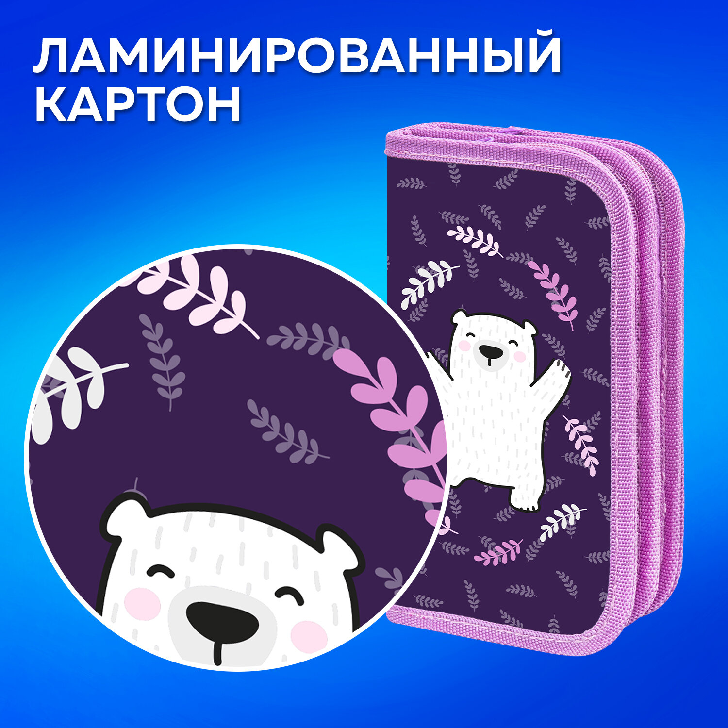 - Пенал ПИФАГОР, 2 отделения, ламинированный картон, 19х11 см, "Happy bear", 272246
