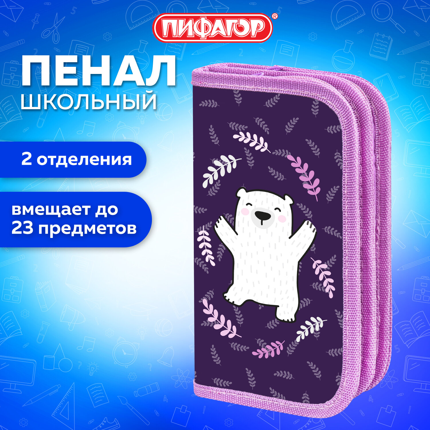 Упакован в ПЭТ-пакет на клейкой ленте и с европодвесом. Позволяет сохранить качество товара при транспортировке и удобно размещать его в магазине. Пенал ПИФАГОР, 2 отделения, ламинированный картон, 19х11 см, "Happy bear", 272246
