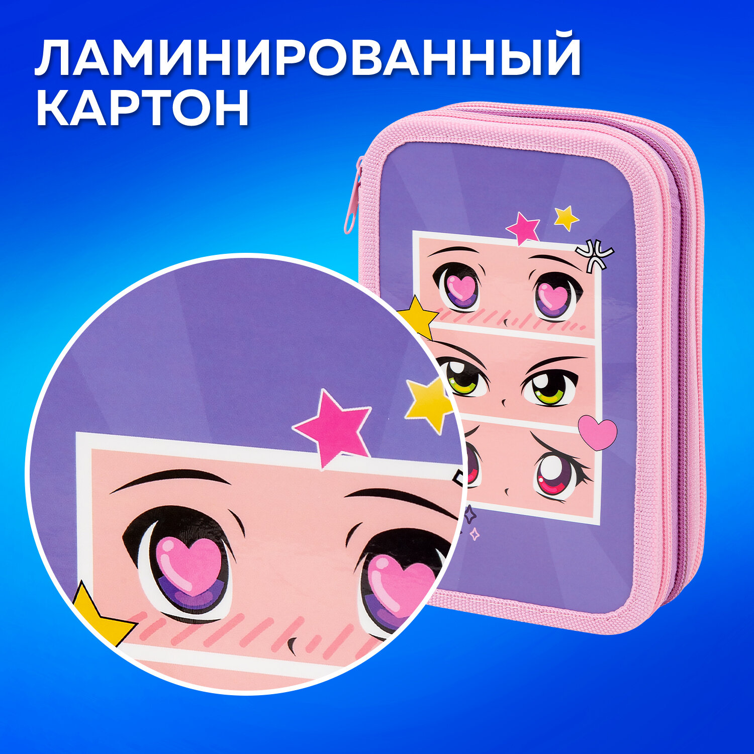 - Пенал ПИФАГОР, 3 отделения, ламинированный картон, 19х11 см, "Anime eyes", 272251