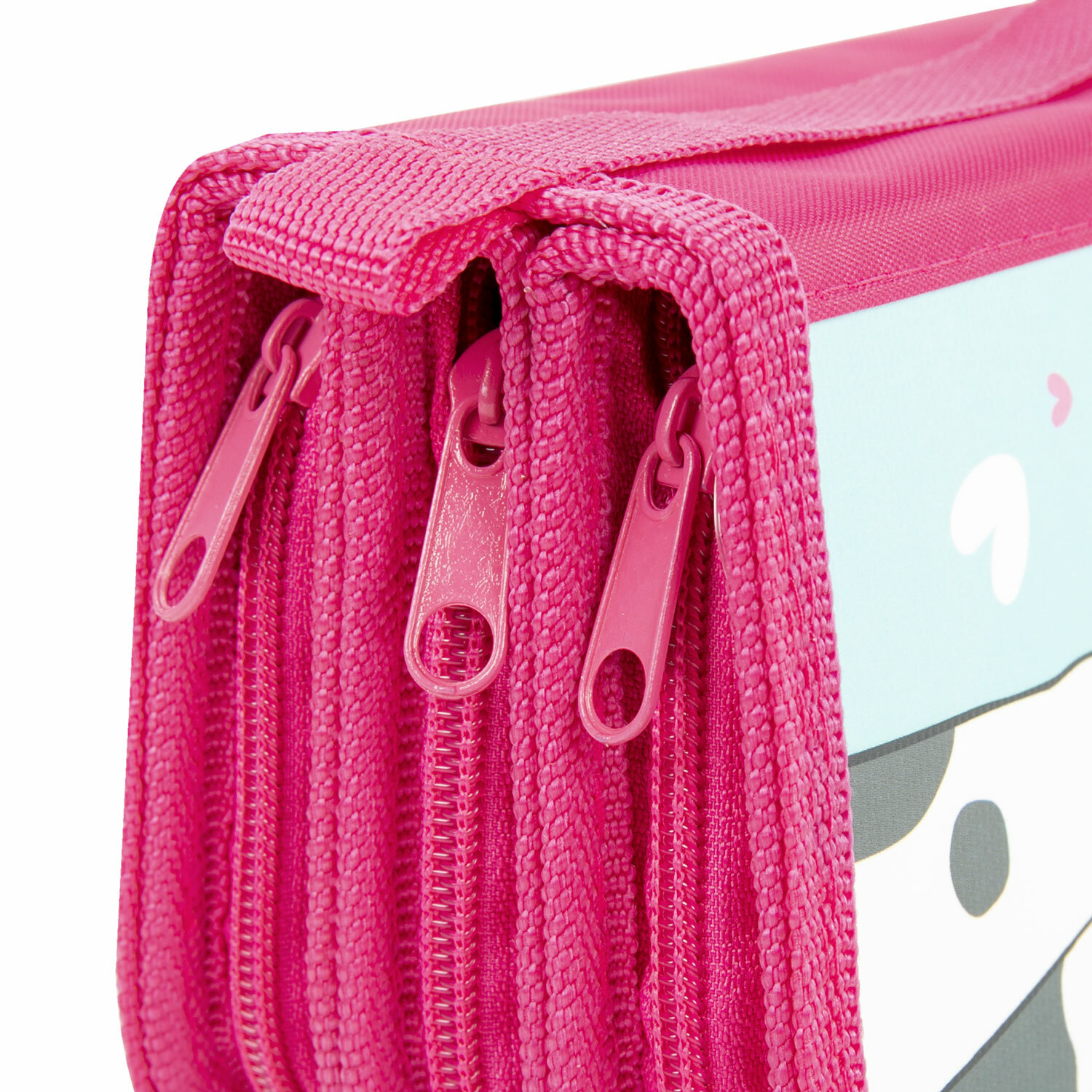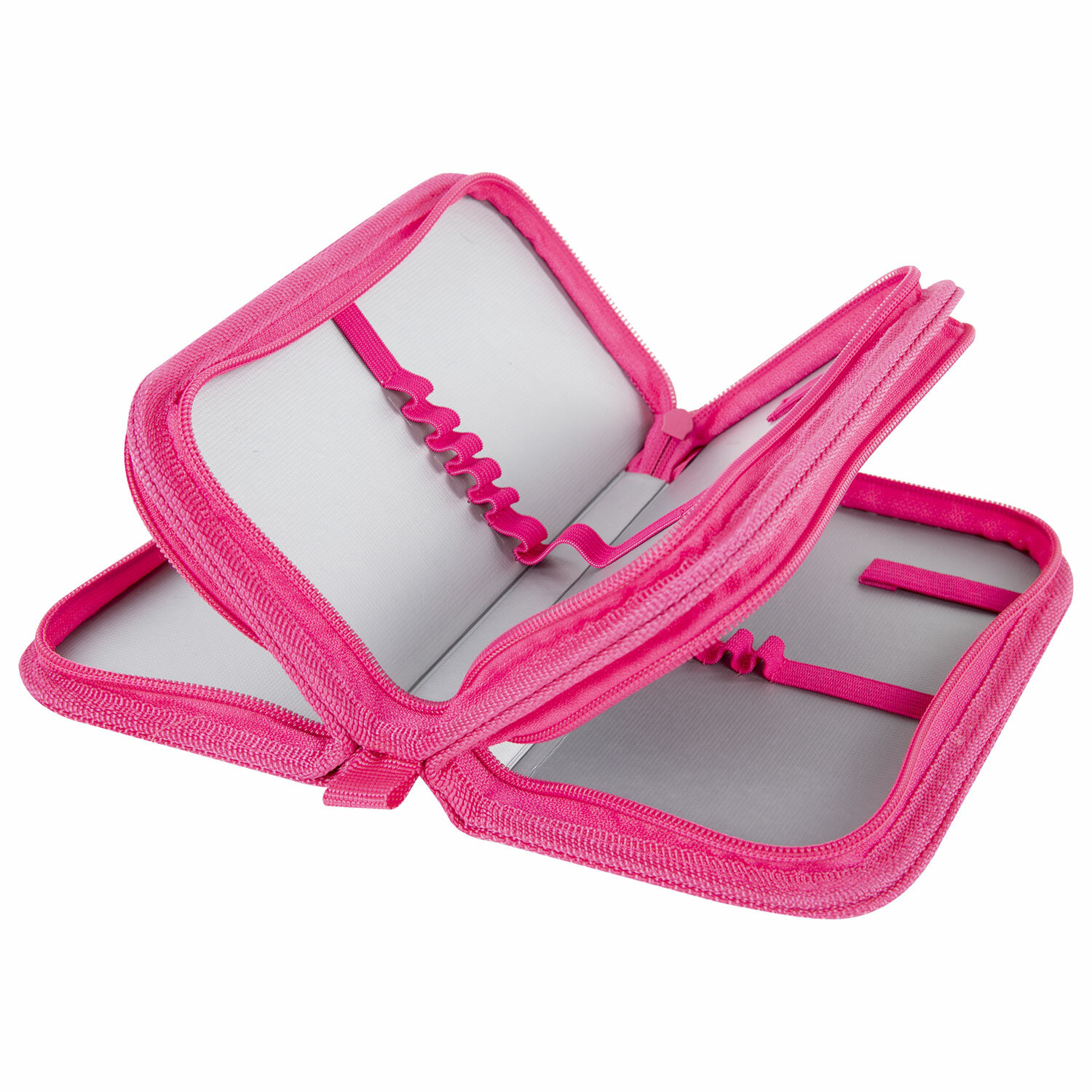 Пенал имеет 3 отделения, внутри на каждой створке имеются прочные резинки для канцелярских принадлежностей. Внутренняя часть выполнена из картона с глянцевой ламинацией с узором.