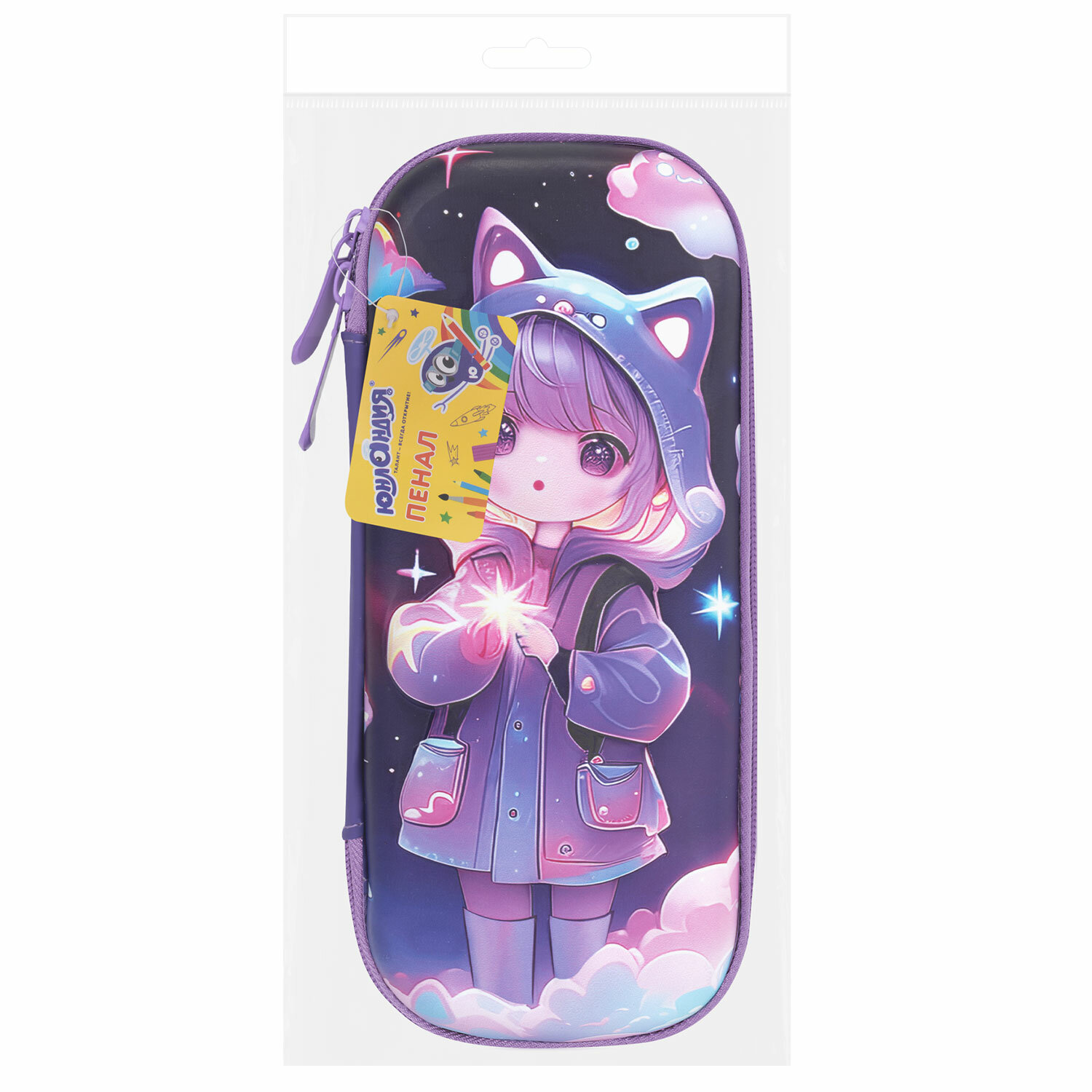 Отлично подойдет для дошкольников и школьников, в качестве подарка для выпускников детских садов, первоклассников, а также на день рождения ребенку любого возраста. Пенал ЮНЛАНДИЯ, 1 отделение, 1 откидная планка, карман, EVA покрытие soft-touch, 22х10х5 см, "Sky Girl", 273183