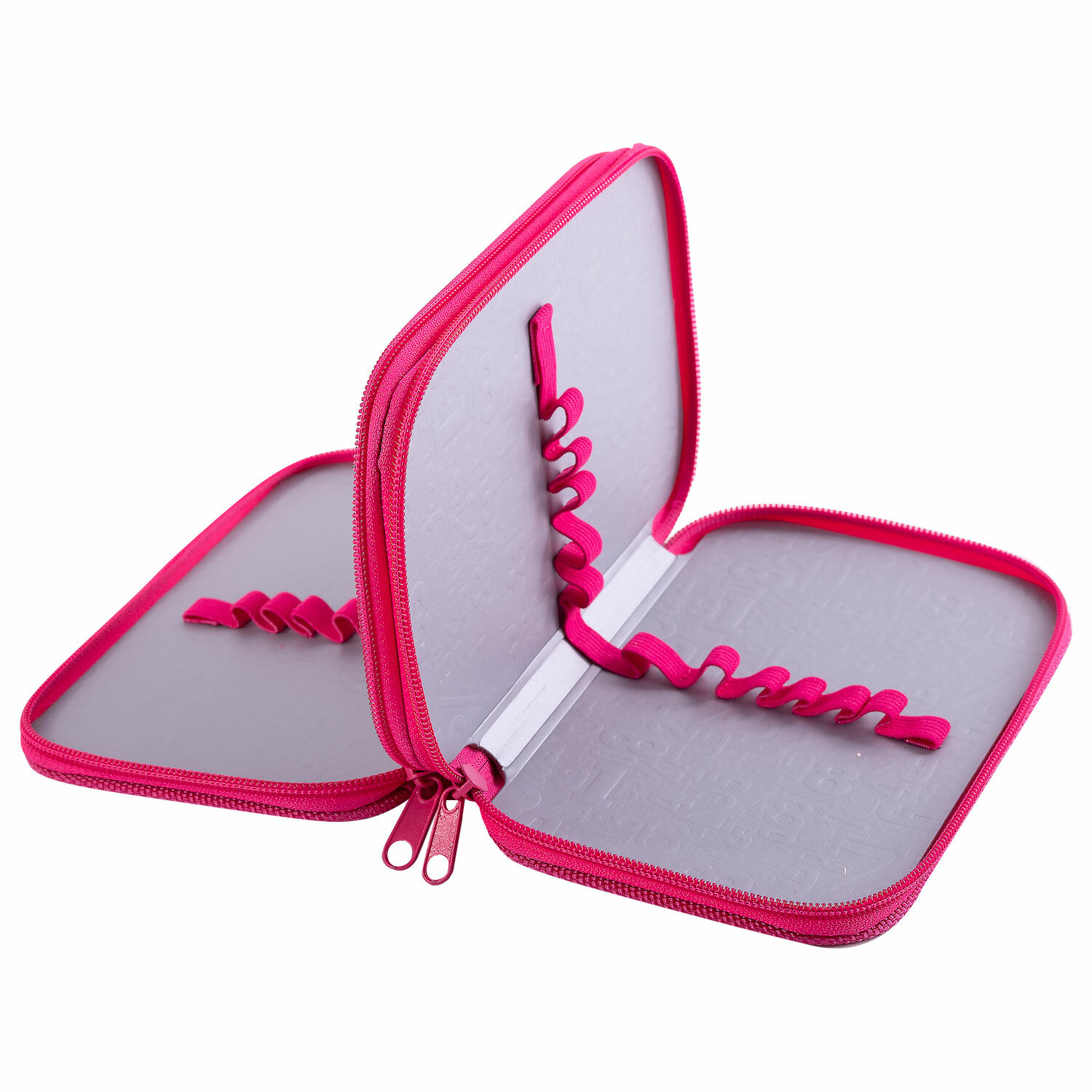 Внутри пенала – два отделения, на каждой створке которых прочно пришиты резинки для канцелярских принадлежностей, внутренняя часть выполнена из картона с глянцевой ламинацией с узором.
