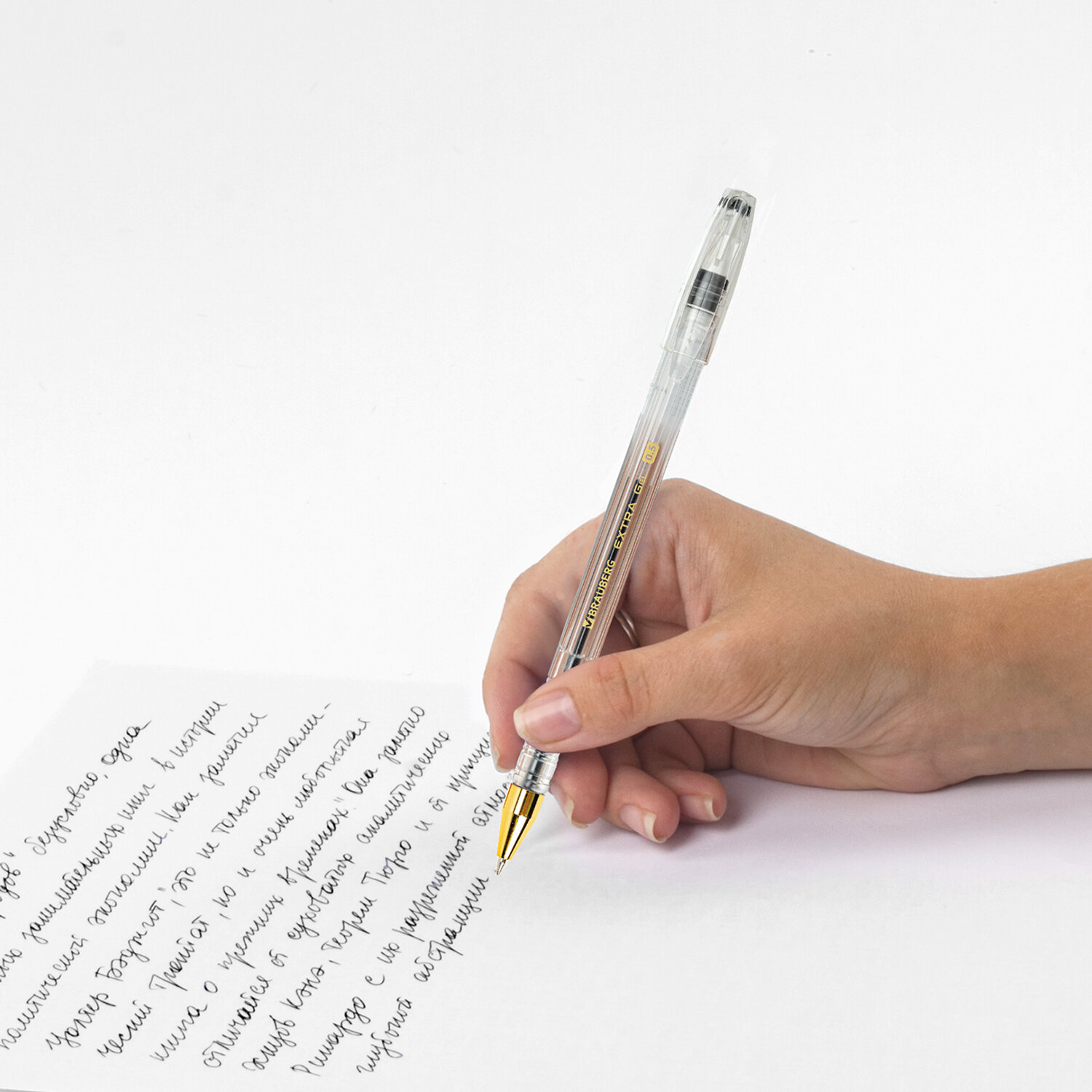 - Ручка гелевая BRAUBERG "EXTRA GLD", ЧЕРНАЯ, корпус прозрачный, узел 0,5 мм, линия 0,35 мм, 143901