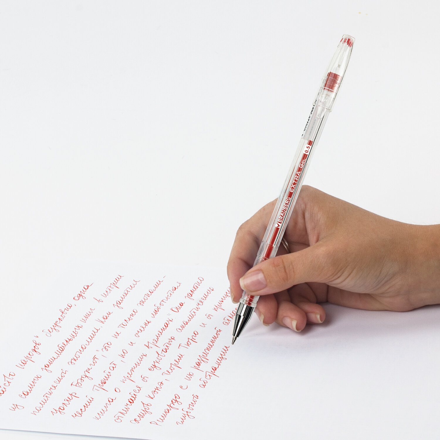 - Ручка гелевая BRAUBERG "EXTRA", КРАСНАЯ, корпус прозрачный, узел 0,5 мм, линия 0,35 мм, 143903