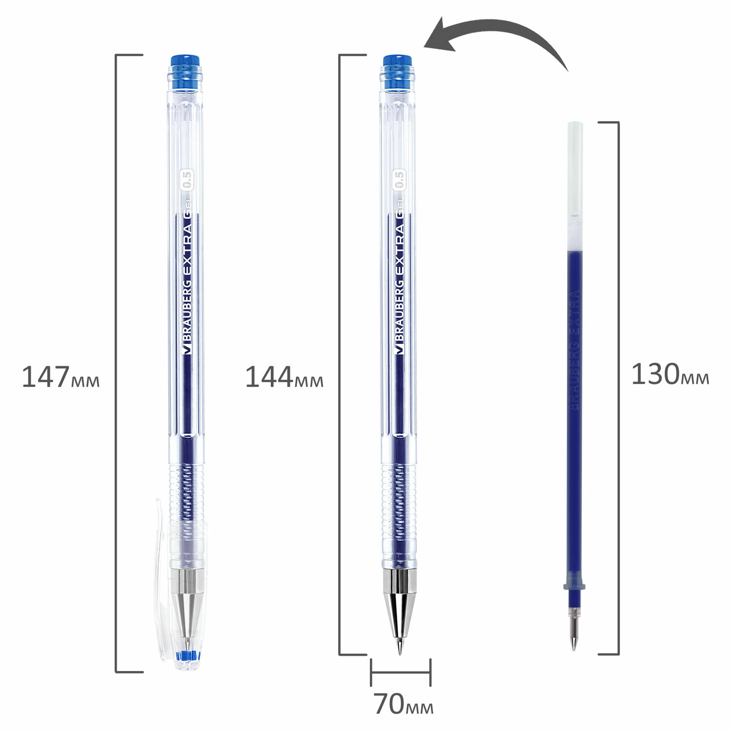 - Ручка гелевая BRAUBERG "EXTRA", СИНЯЯ, корпус прозрачный, узел 0,5 мм, линия 0,35 мм, 143902