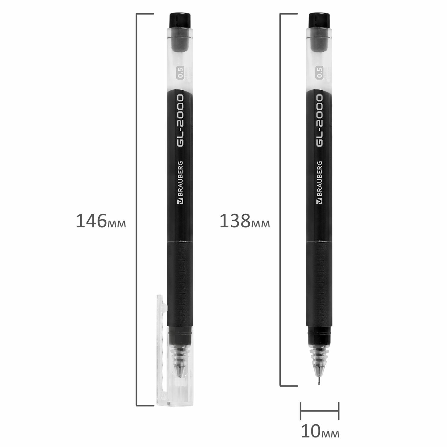 - Ручка гелевая BRAUBERG "GL-2000", ЧЕРНАЯ, японские чернила, длина письма 2000 метров, линия письма 0,35 мм, 144217