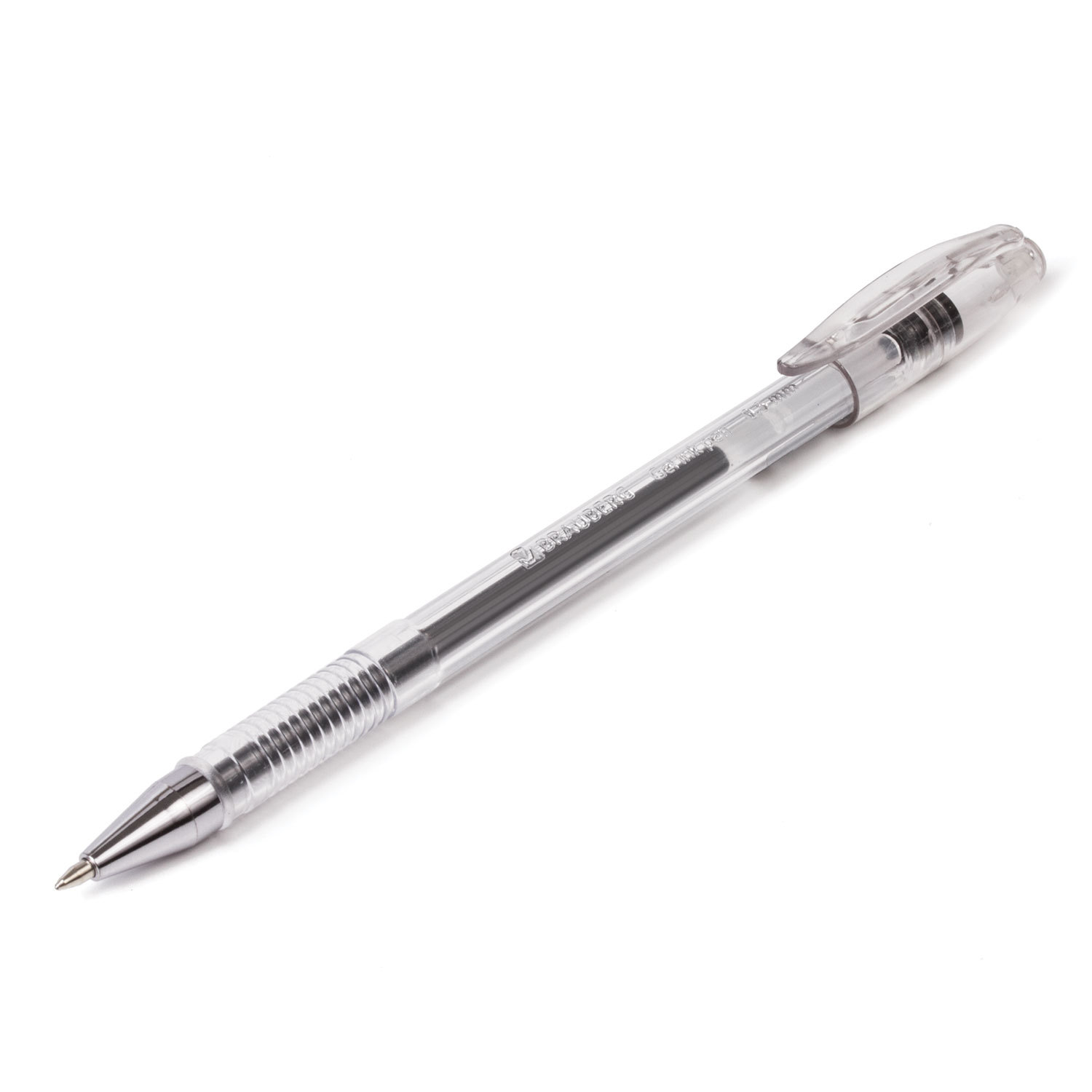- Ручка гелевая BRAUBERG "Jet", ЧЕРНАЯ, корпус прозрачный, узел 0,5 мм, линия письма 0,35 мм, 141018