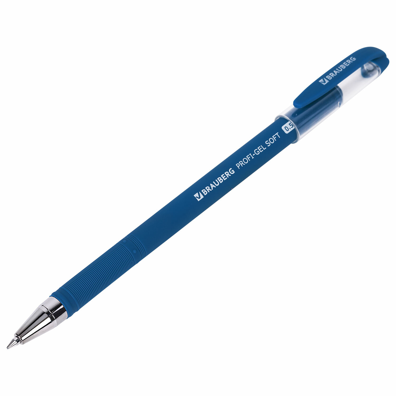 - Ручка гелевая BRAUBERG "Profi-Gel SOFT", СИНЯЯ, линия письма 0,4 мм, стандартный наконечник 0,5 мм, прорезиненный корпус SOFT-TOUCH, 144130