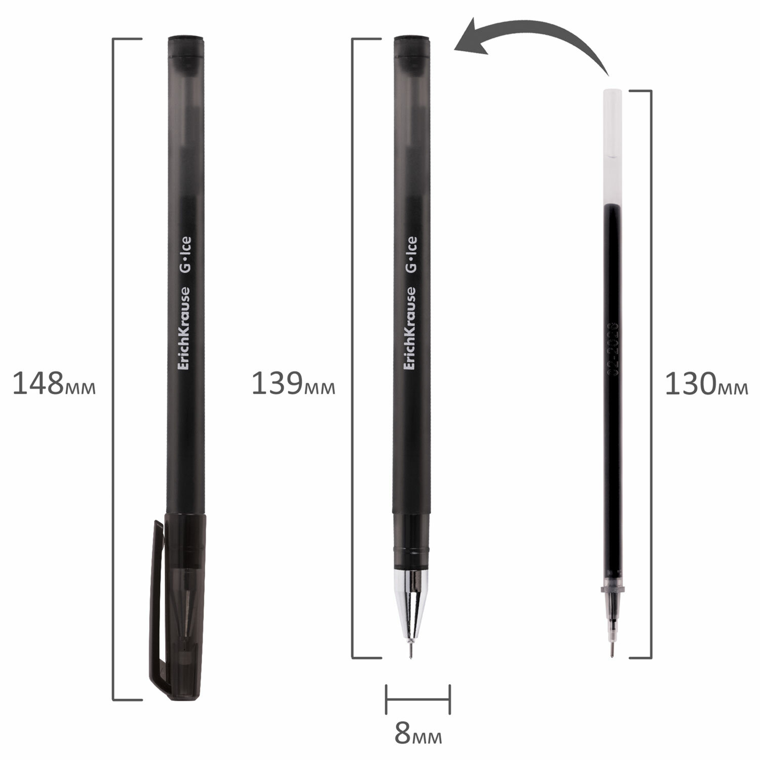 - Ручка гелевая ERICH KRAUSE "G-Ice", ЧЕРНАЯ, корпус прозрачный, игольчатый узел 0,5 мм, линия письма 0,4 мм, 39004