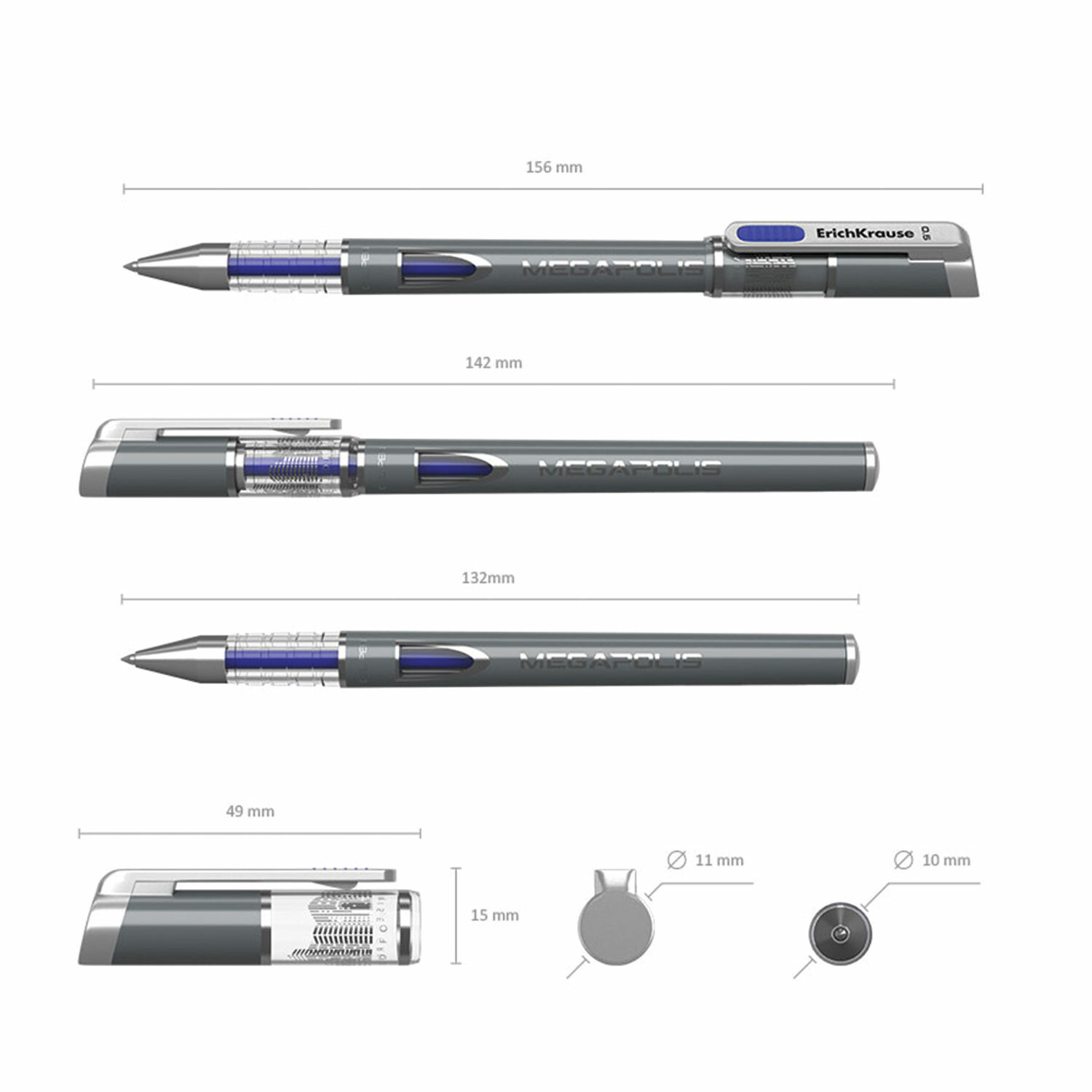 Пишущий узел с диаметром шарика 0,5 мм в сочетании с гелевыми чернилами обеспечивает точное и быстрое письмо без усилий. Длина непрерывной линии составляет 500 м при толщине 0,4 мм, что является высоким показателем в своей категории. Длина сменного стержня – 129 мм. Ручка гелевая ERICH KRAUSE "Megapolis Gel", СИНЯЯ, корпус с печатью, узел 0,5 мм, линия письма 0,4 мм, 92