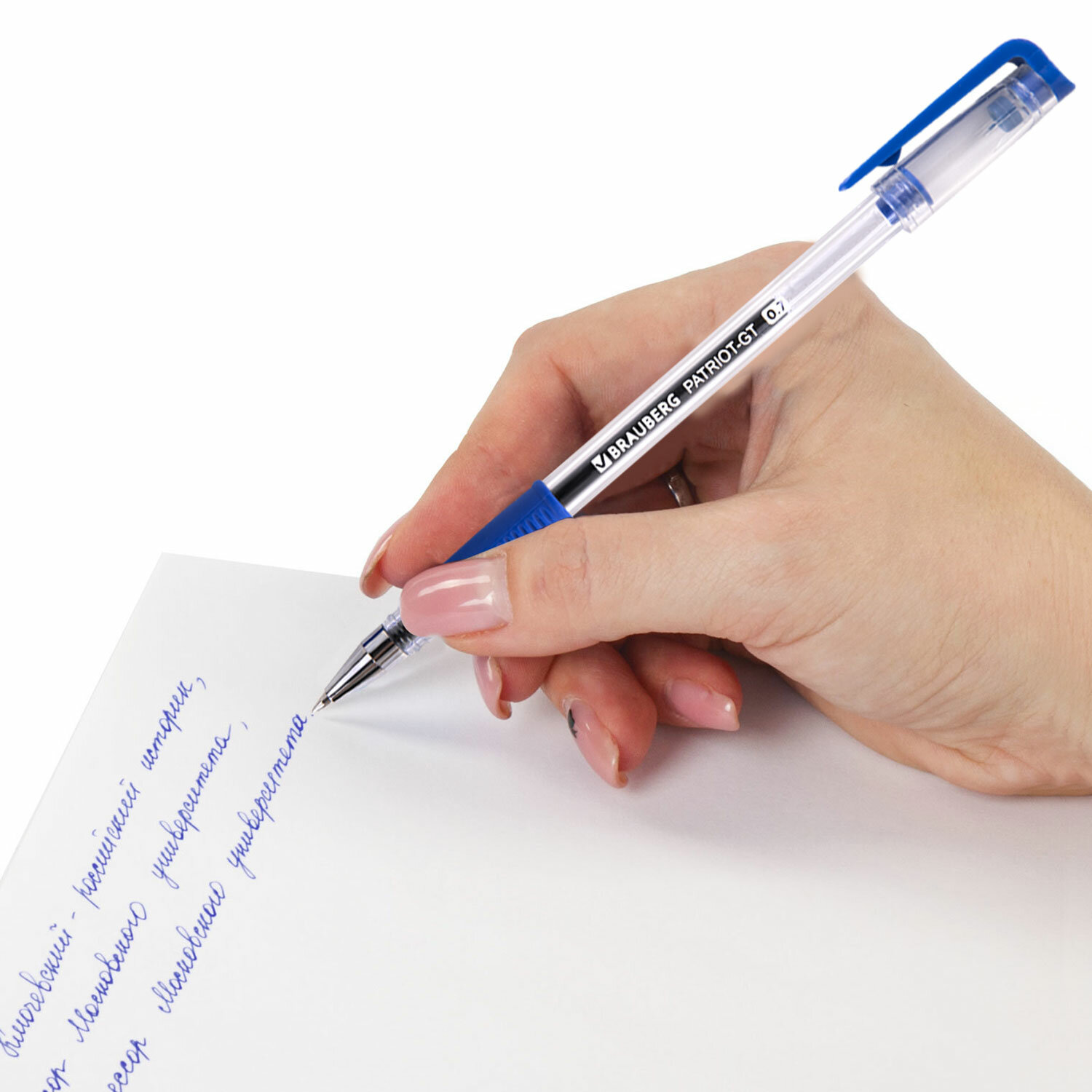 - Ручка гелевая РОССИЯ "PATRIOT-GT", СИНЯЯ, корпус прозрачный, узел 0,7 мм, линия письма 0,4 мм, BRAUBERG, 143959