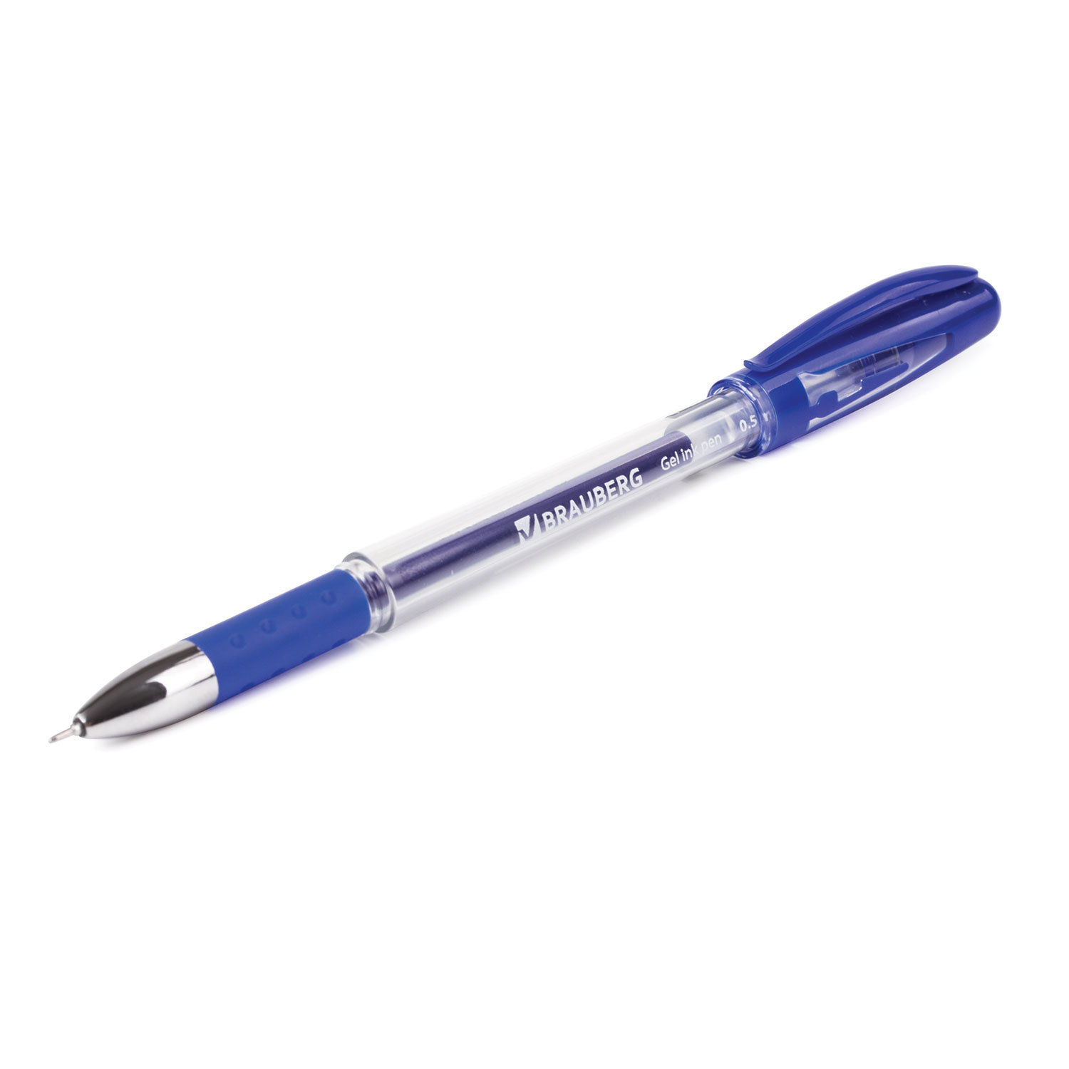 - Ручка гелевая с грипом BRAUBERG "Geller", СИНЯЯ, игольчатый узел 0,5 мм, линия письма 0,35 мм, 141179