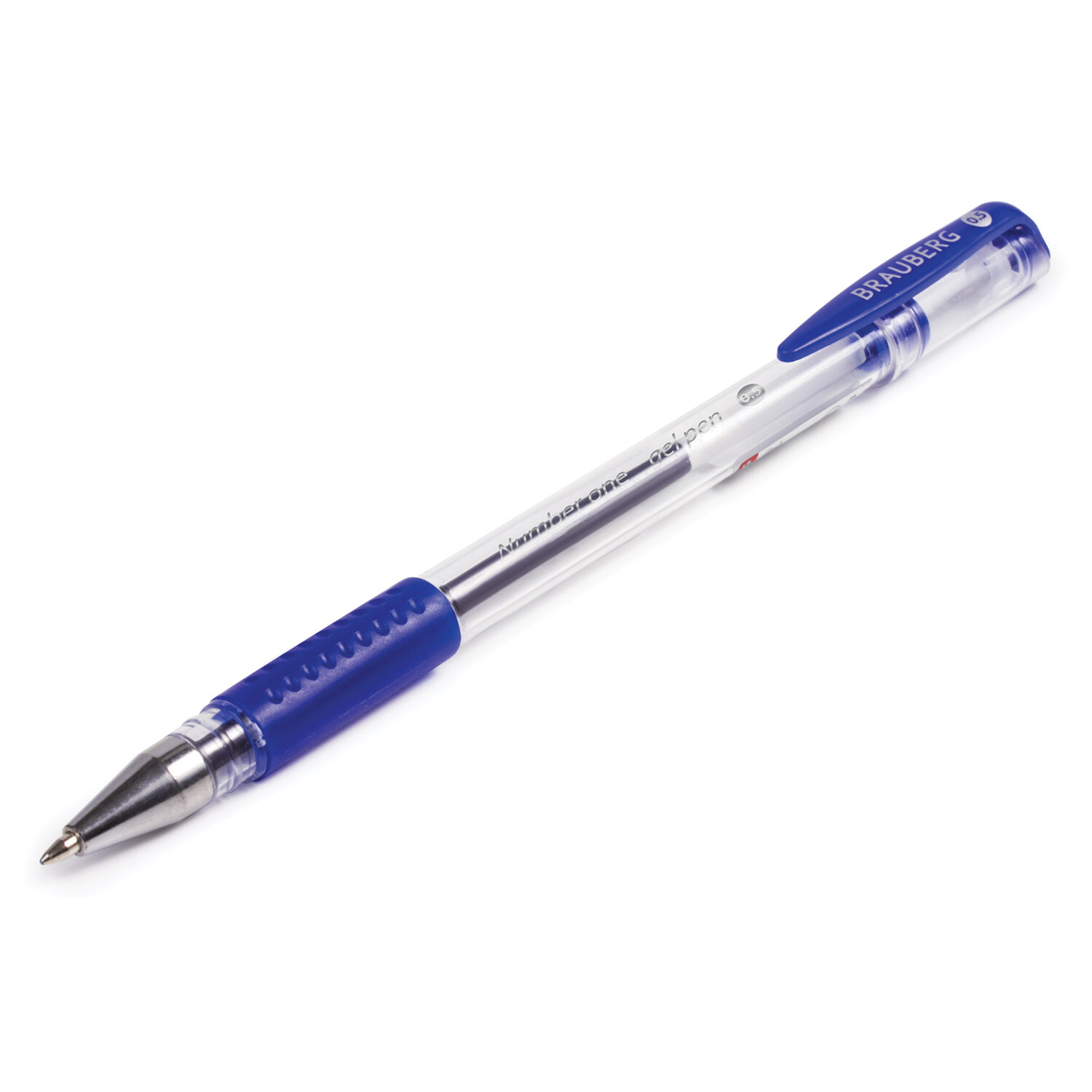 - Ручка гелевая с грипом BRAUBERG "Number One", СИНЯЯ, узел 0,5 мм, линия письма 0,35 мм, 141193