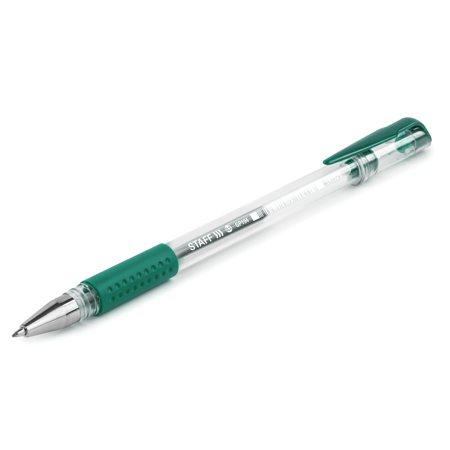 - Ручка гелевая с грипом STAFF "EVERYDAY" GP-194, ЗЕЛЕНАЯ, корпус прозрачный, узел 0,5 мм, линия письма 0,35 мм, 141825
