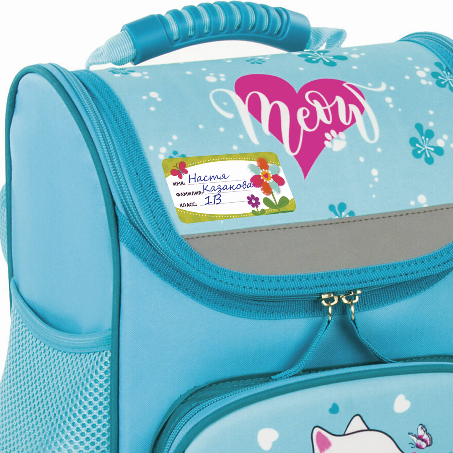В наборе содержится 12 бумажных наклеек с объёмными элементами из мягкого пластика. На каждой наклейке предусмотрены линейки, на которых школьник может указать своё имя, фамилию и класс. Школьные наклейки - это не только удобный, но ещё и красивый способ индивидуализировать вещи ученика.