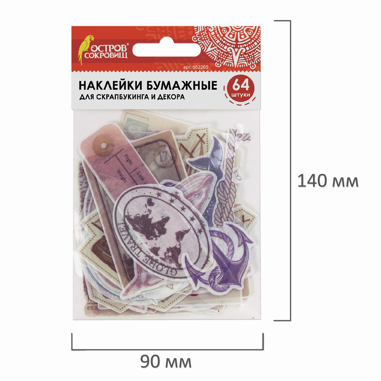 Товар отличается высоким качеством печати и клеевого слоя. Наклейки для скрапбукинга ПУТЕШЕСТВИЕ из washi-бумаги, 64 штуки, 32 дизайна, ОСТРОВ СОКРОВИЩ, 662265