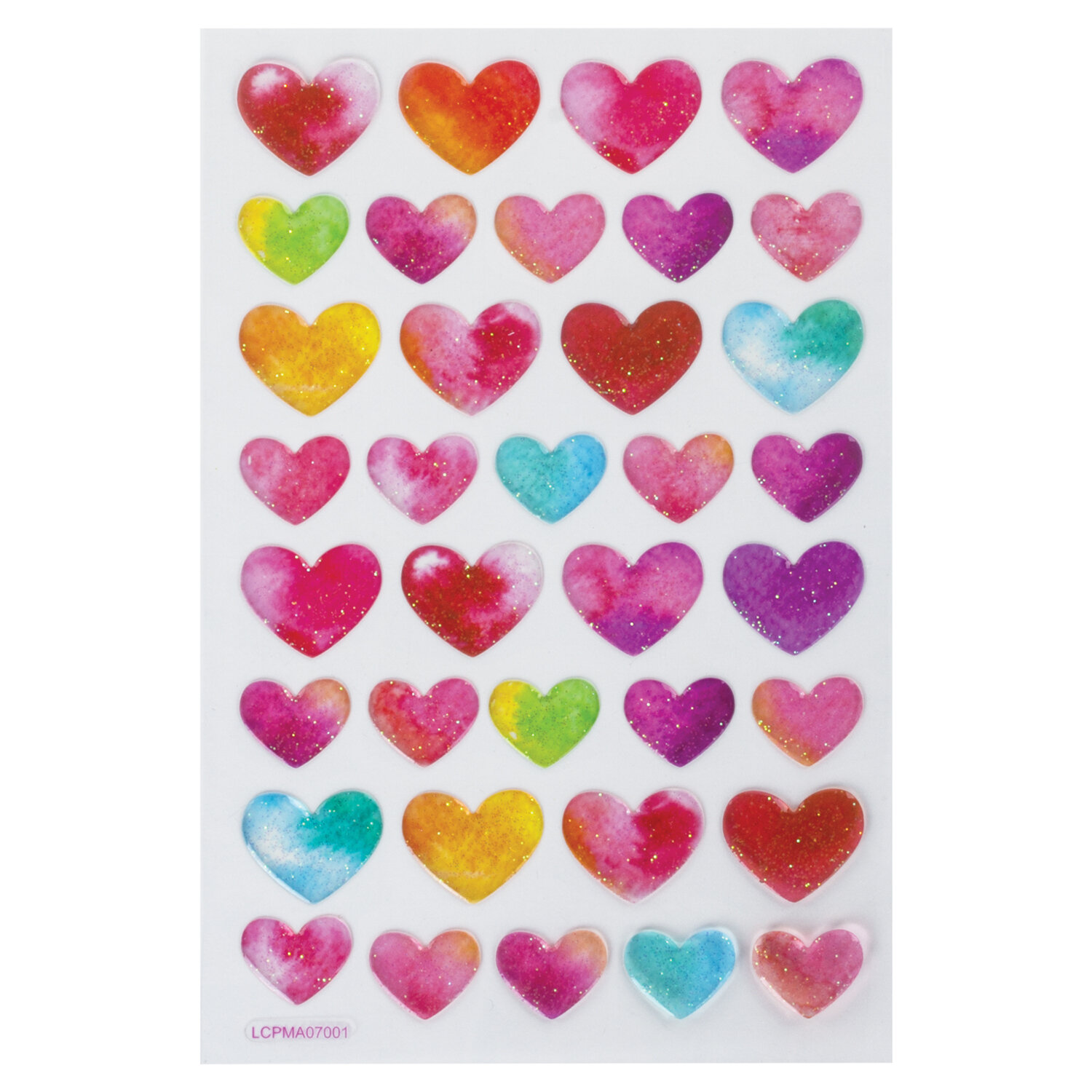 Наклейки гелевые "Сердца", многоразовые, с блестками, 10х15 см, ЮНЛАНДИЯ, 661830