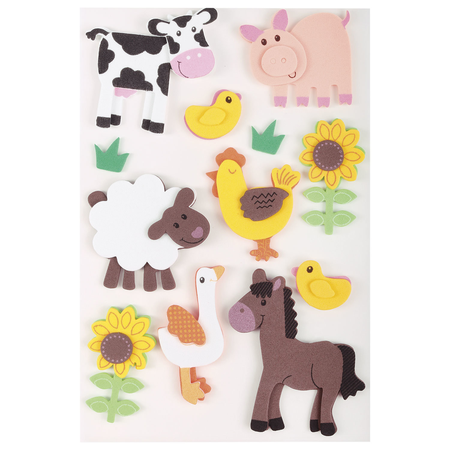 Наклейки из EVA "Ферма", 12 шт., ассорти, ОСТРОВ СОКРОВИЩ, 661459