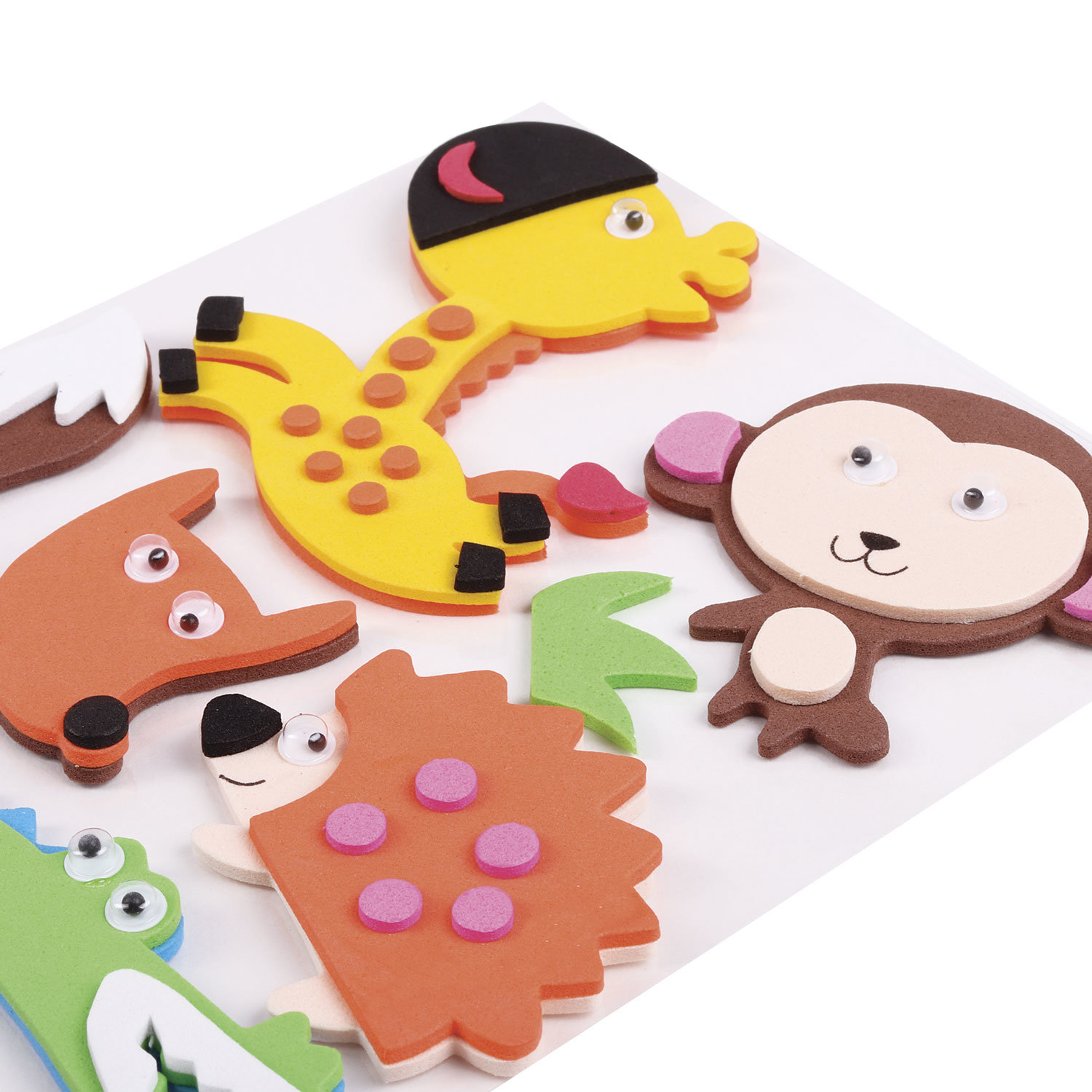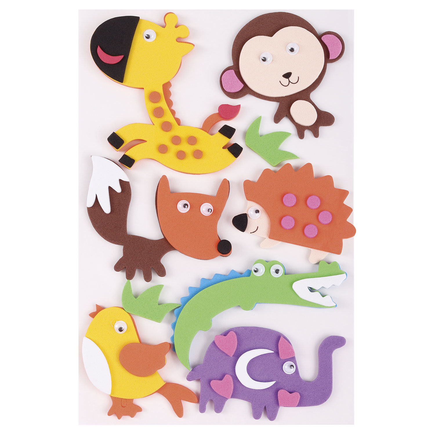 Изготовлены из фоамирана (EVA). В комплекте 8 красочных декоративных элементов в форме животных. Предназначены для детей от 3 лет. Поставляются в пакете с европодвесом с вкладышем размером 10х16 см. Качественный клеевой слой обеспечит надежную фиксацию на любых поверхностях.