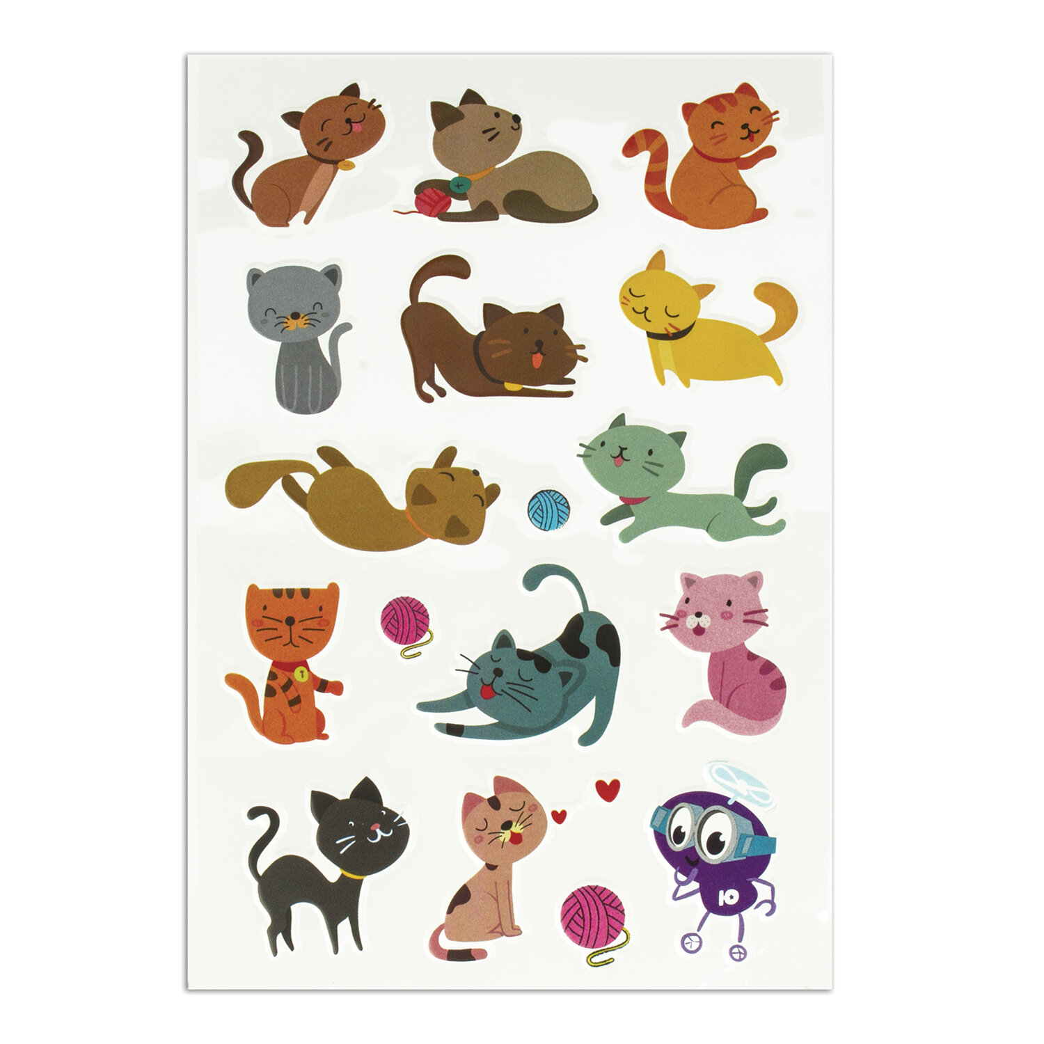 В наборе содержатся мягкие зефирные наклейки с изображением котят в количестве 17 штук. Наклейки отличаются высочайшим качеством печати и цветопередачи. Забавные разноцветные котики придутся каждому по душе, придадут оригинальности тетрадям, дневникам, гаджетам и мило украсят поделки.
