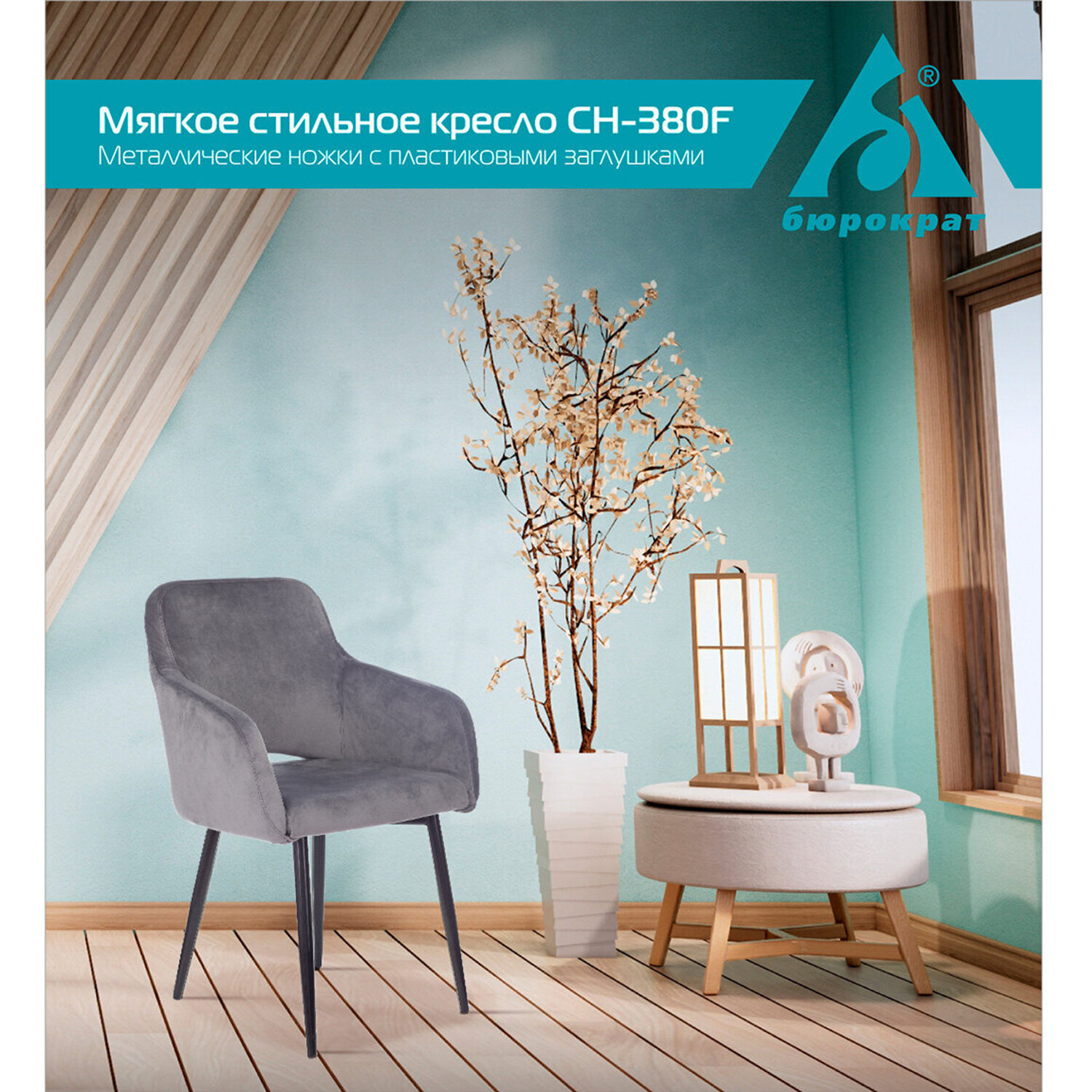 - Кресло CH-380F, на ножках, ткань, темно-серое, 1611134