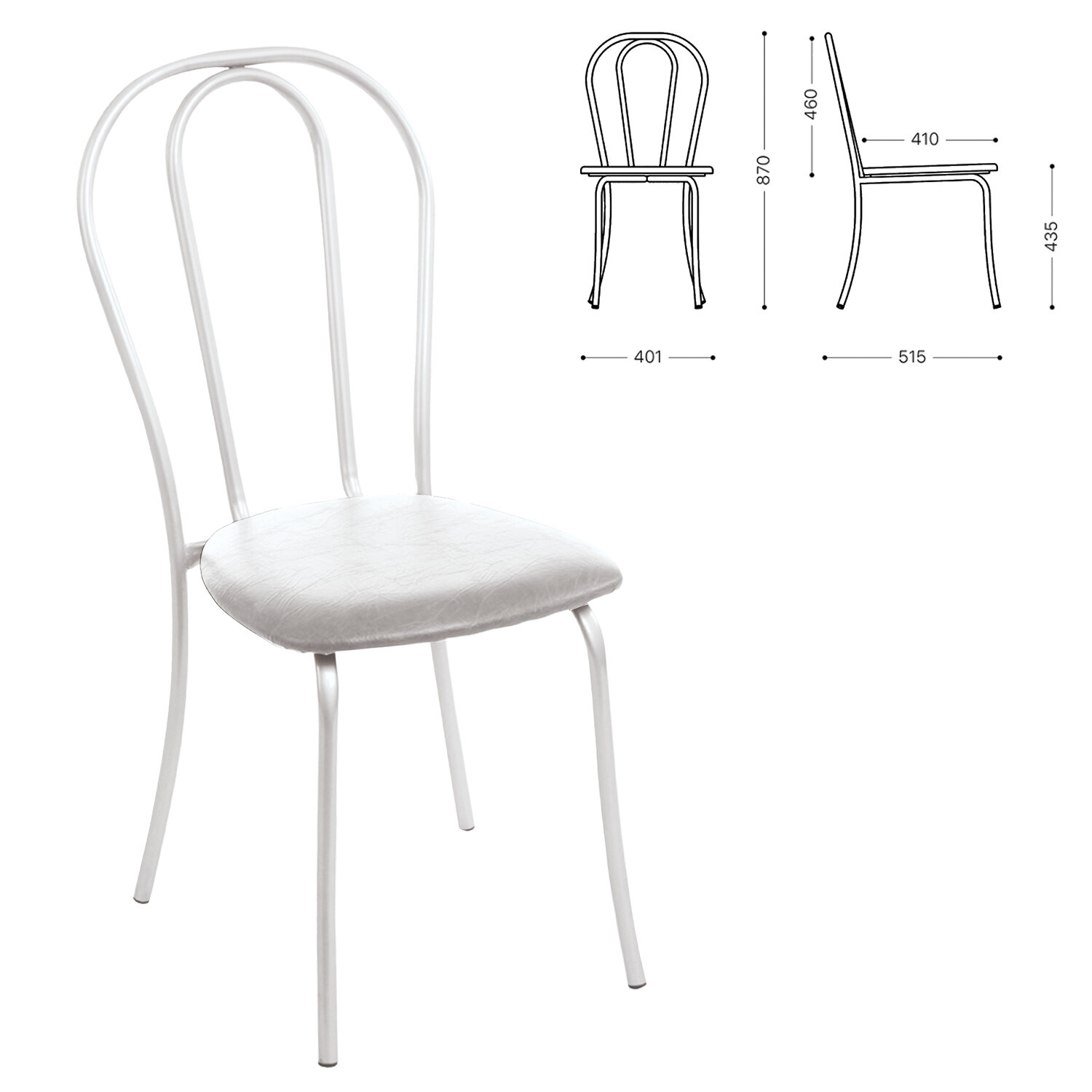 Белый металлический каркас изготовлен из трубы сечением 19 мм., отличается повышенной прочностью. Мягкие элементы обтянуты высококачественным кожзаменителем матового светло-серого цвета, повышенной износостойкости. Поставляется в собранном виде. Стул для столовых, кафе, дома "Вереск", белый каркас, кожзам светло-серый, СМ7/6-05 К-05