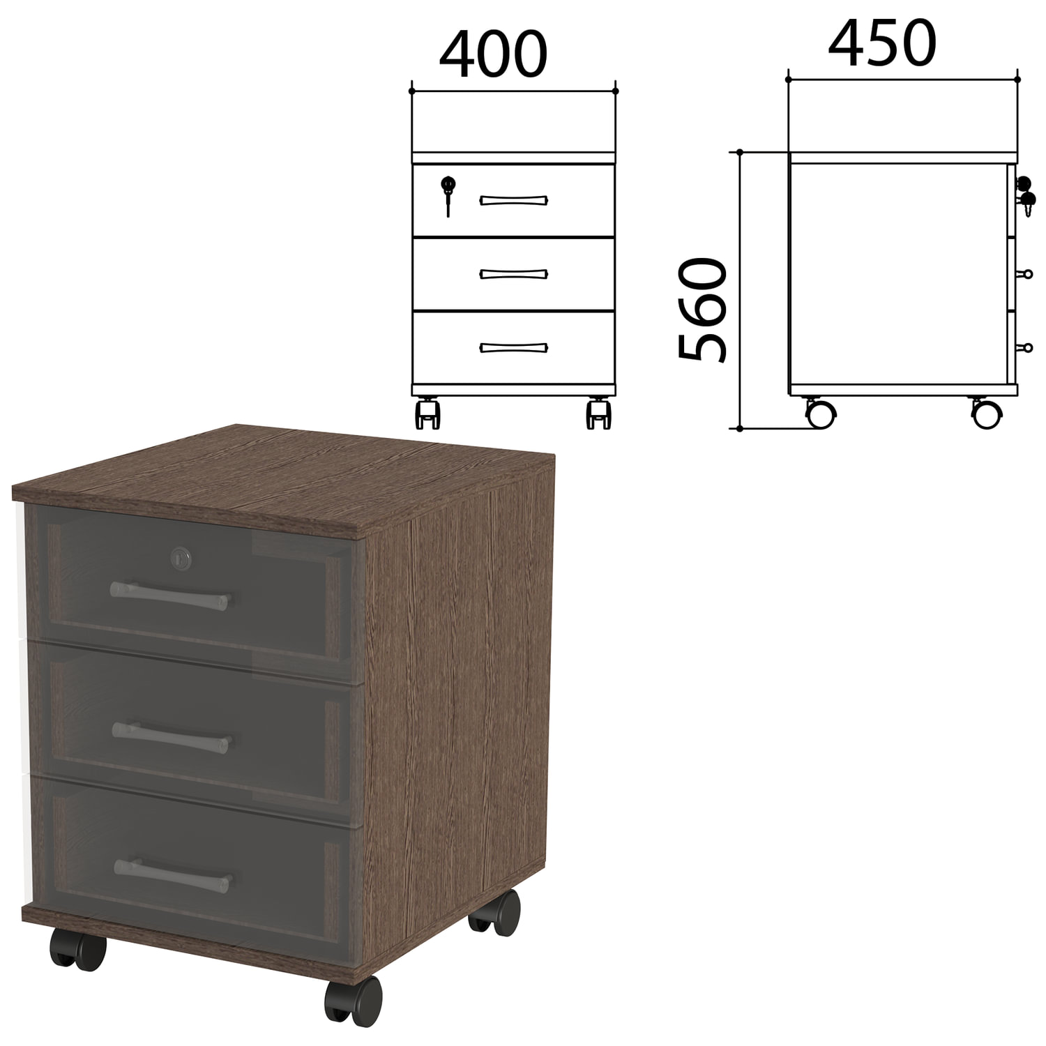 Каркас совместно с фасадами (код 640559, 640560) предназначен для формирования комплекта подкатной тумбы (код 980513, 980515). Каркас тумбы подкатной "Канц" 400х450х560 мм, цвет венге, ТК29.16.1