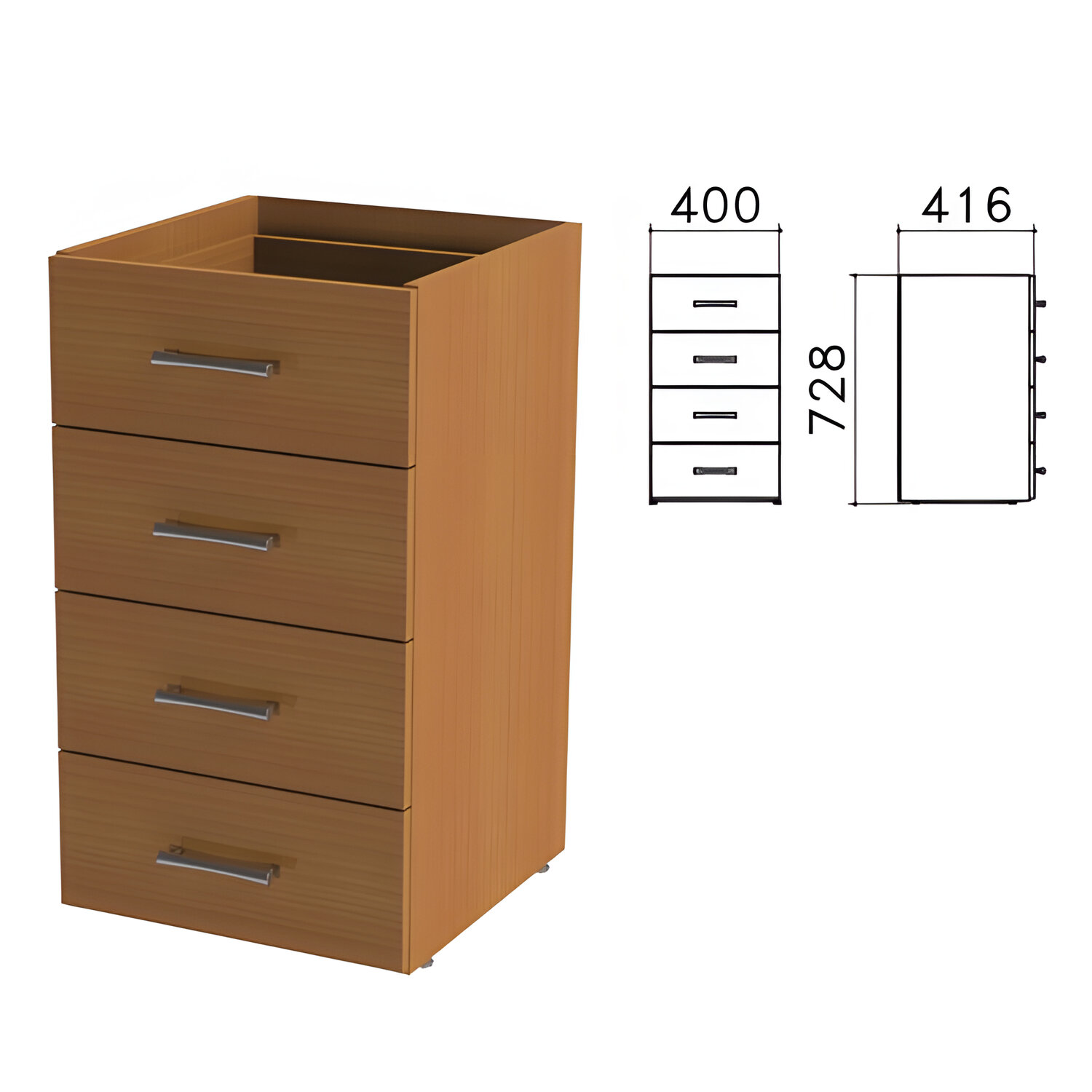 - Тумба (каркас БЕЗ КРЫШКИ) приставная "Монолит", 400х416х728 мм, 4 ящика, орех гварнери, ТМ05.3