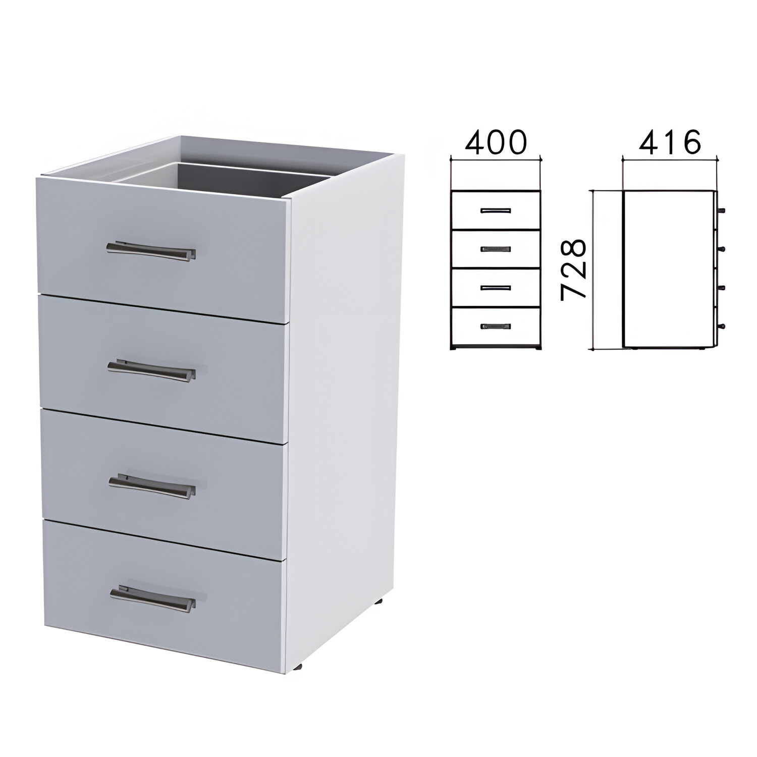 Тумба (каркас БЕЗ КРЫШКИ) приставная "Монолит", 400х416х728 мм, 4 ящика, серая, ТМ05.11