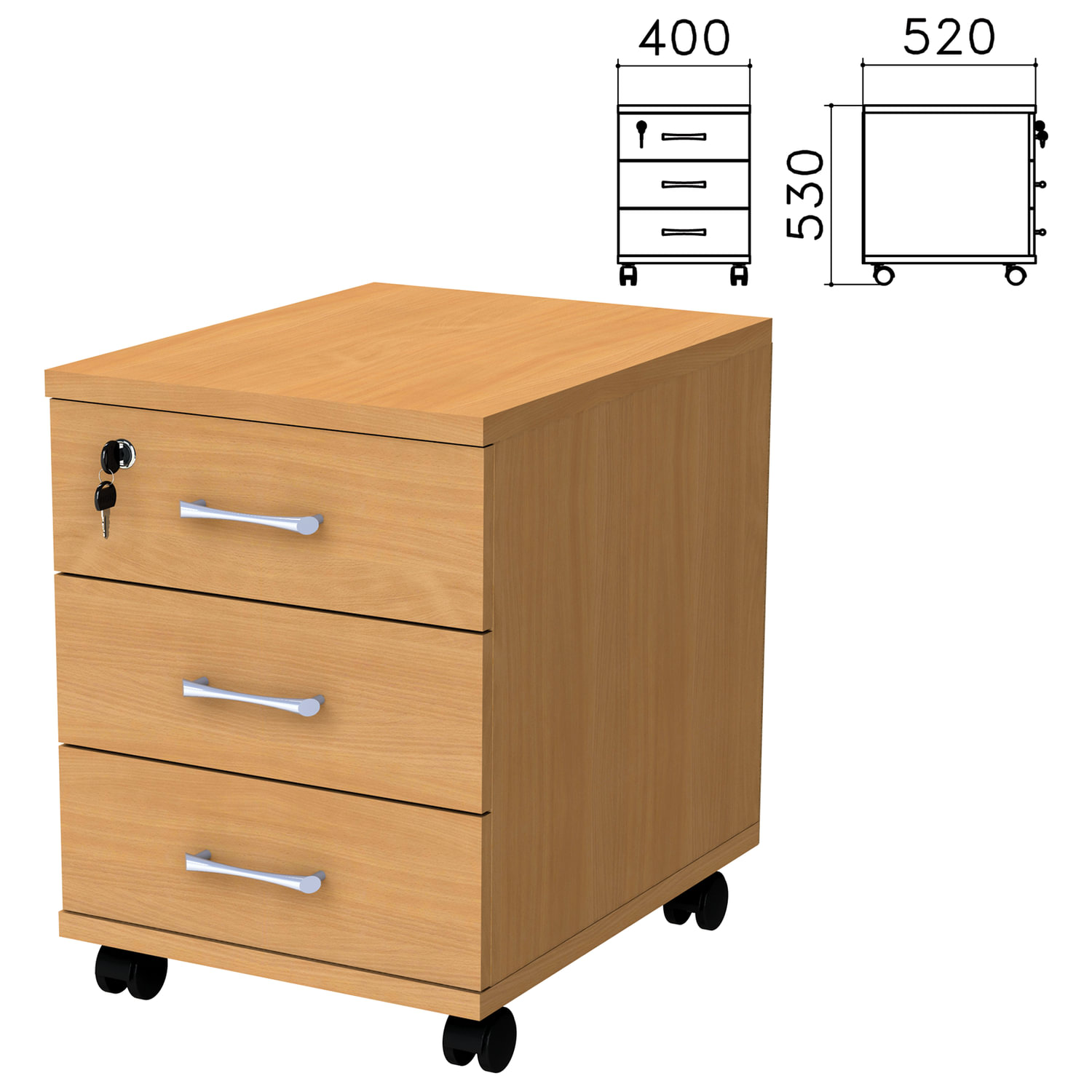 - Тумба подкатная "Монолит", 400х520х530 мм, 3 ящика, замок, цвет бук бавария, ТМ25.1