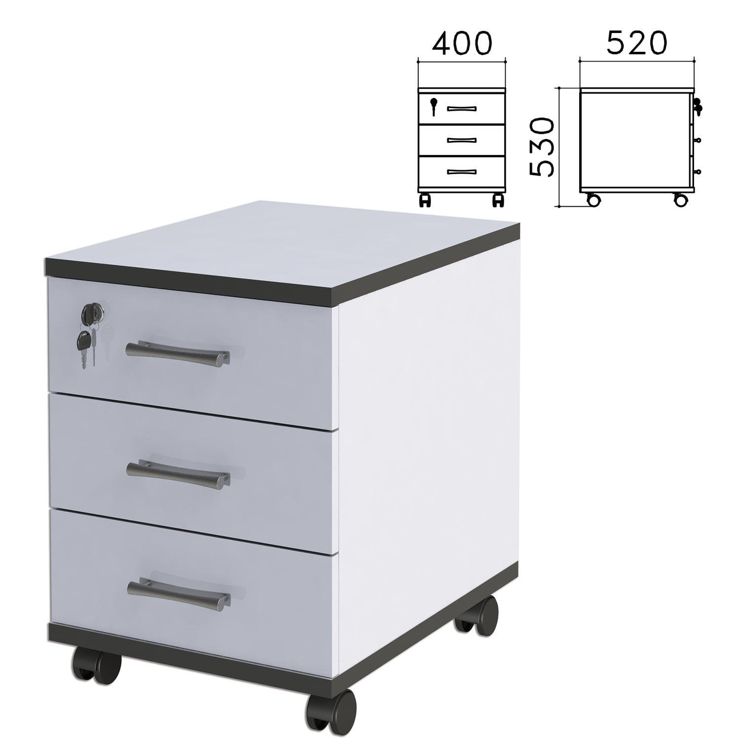 - Тумба подкатная "Монолит", 400х520х530 мм, 3 ящика, замок, цвет серый, ТМ25.11