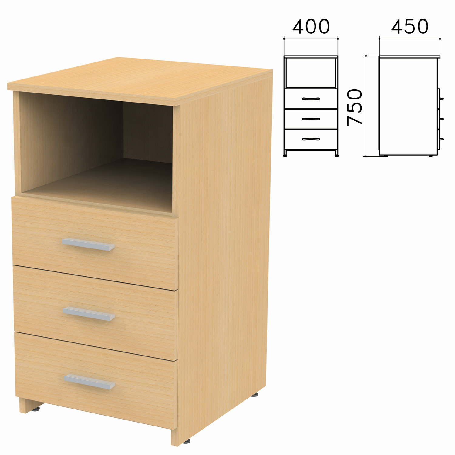 - Тумба приставная "Канц", 400х450х750 мм, 3 ящика, полка, цвет бук невский, ТК31.10