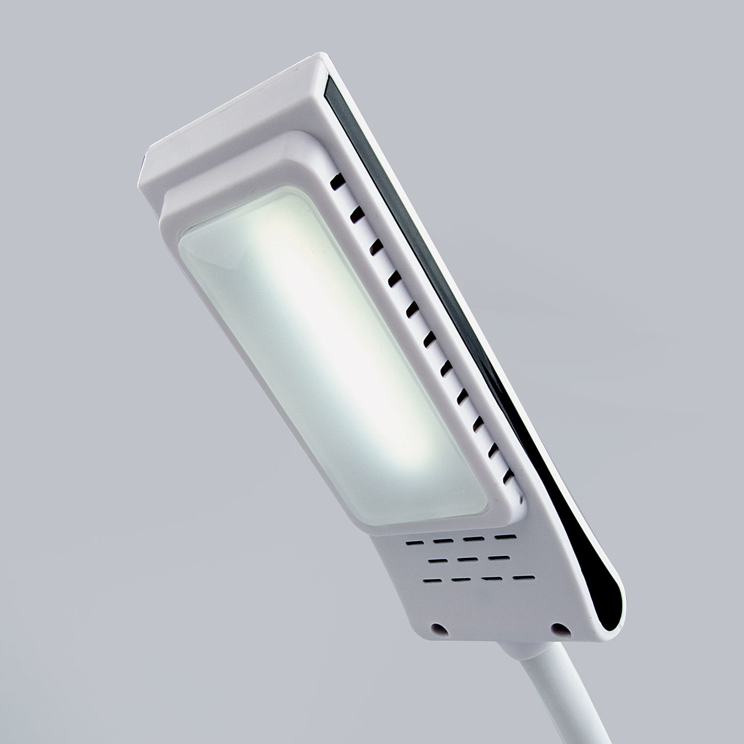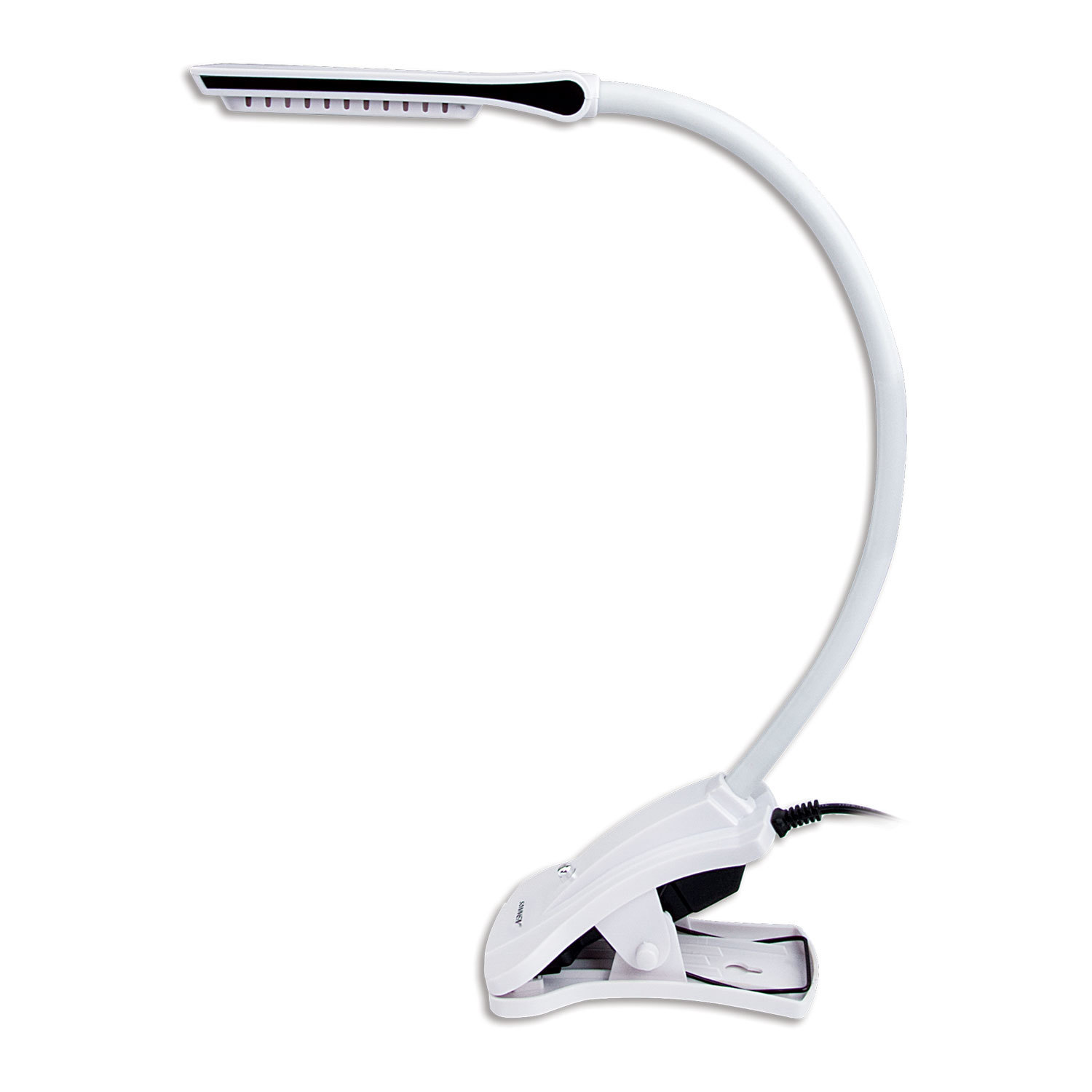 Настольный светильник высотой 42 см представлен в классическом белом дизайне, благодаря которому гармонично впишется в офисный или домашний интерьер. Устройство оснащено легким пластиковым корпусом на прищепке и яркой LED-матрицей на 5 Вт. Вы будете довольны освещением с цветовой температурой более 6100 K и световым потоком 220 Лм, которое обеспечивают 8 светодиодов.