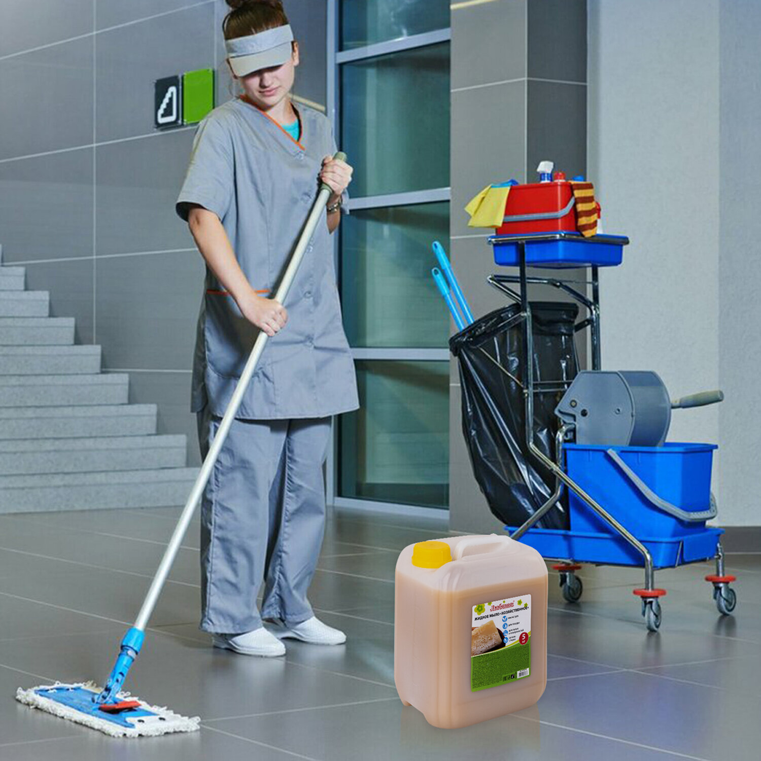 Средство универсального применения отлично очищает кожу, подходит для мытья кухонной утвари и стирки. Подходит для всех типов кожи и не содержит формальдегида. Большого объема 5 л хватит надолго, что позволит сэкономить время и средства. При необходимости можно перелить во флакон с дозатором.