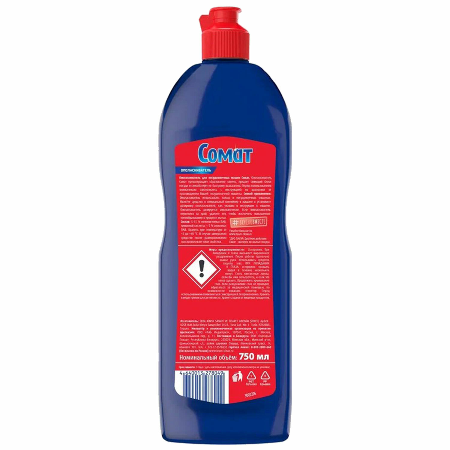 Хранить в сухом месте при температуре от +5 до +40 °C. Ополаскиватель для мытья посуды в посудомоечных машинах 750 мл СОМАТ, 2312112