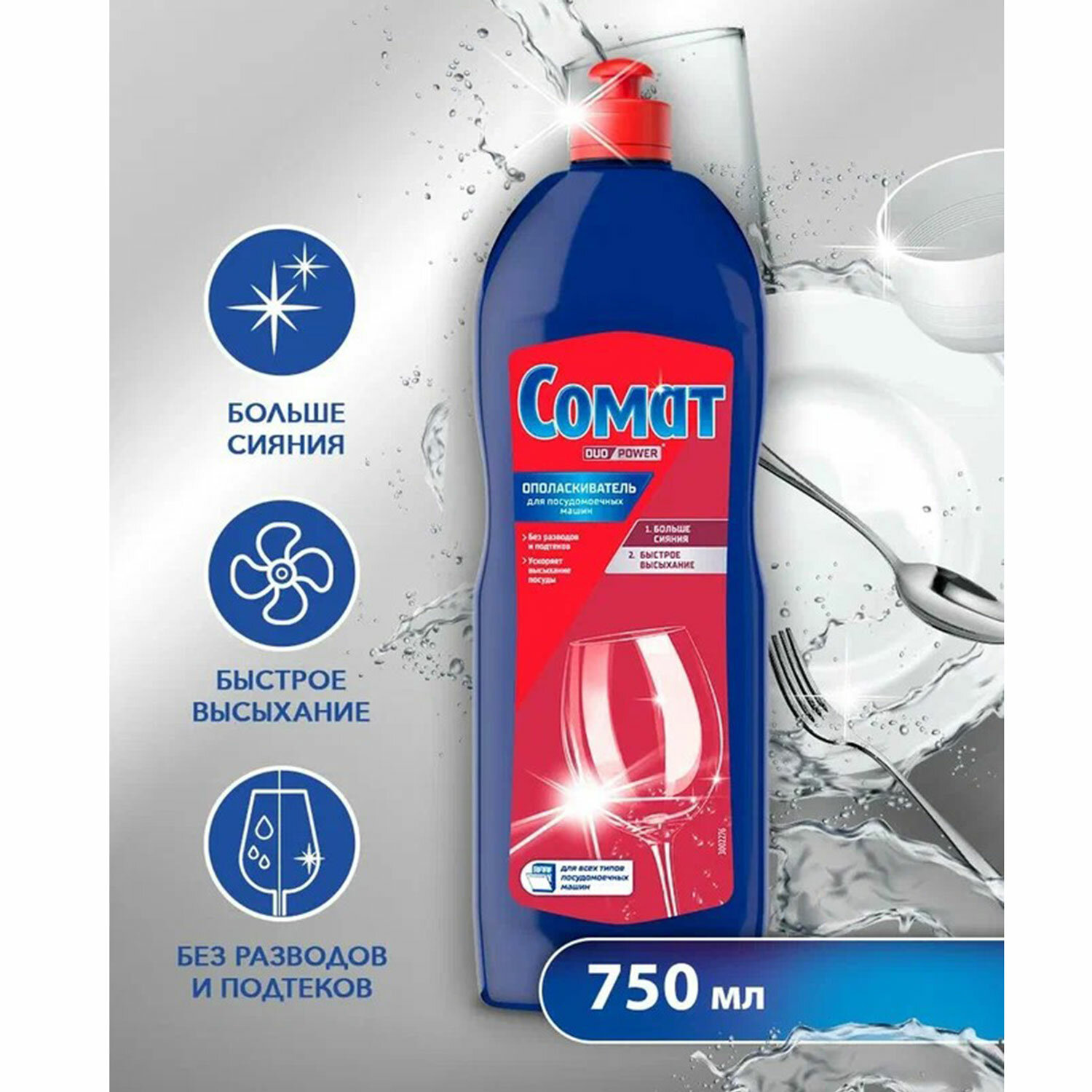 - Ополаскиватель для мытья посуды в посудомоечных машинах 750 мл СОМАТ, 2312112