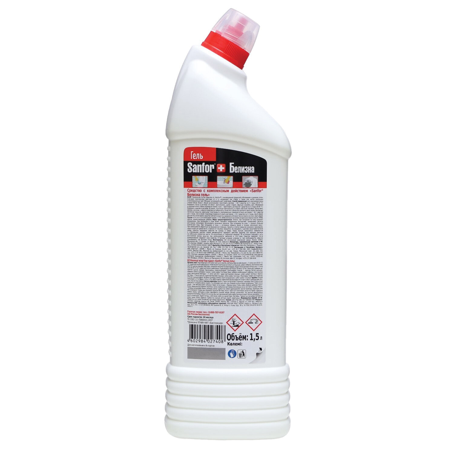 - Средство для отбеливания и чистки тканей 1,5 л, SANFOR "Белизна" 3 в 1 гель, 25408
