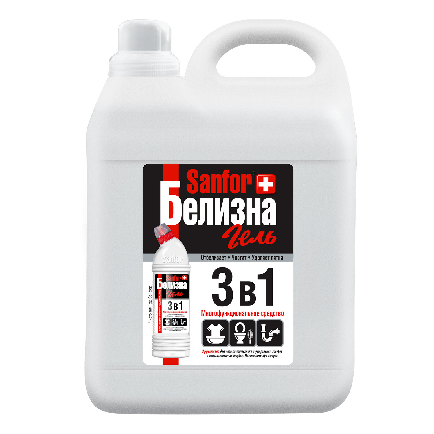 Средство для отбеливания и чистки тканей 5 л, SANFOR "Белизна 3 в 1", гель, 22054
