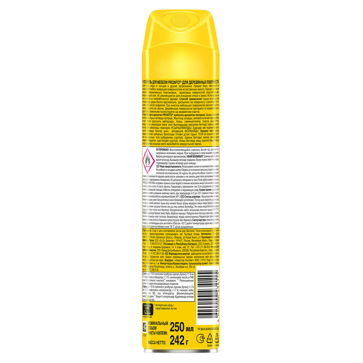 - Полироль для мебели и деревянных поверхностей 250 мл, PRONTO (Пронто), аэрозоль, 864905