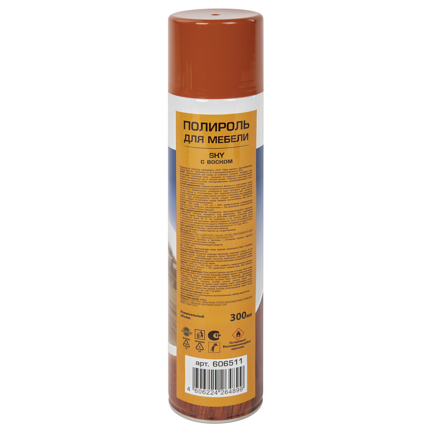СОСТАВ: вода деминерализованная более 30%, пропан/бутан/изобутан более 15%, но менее 30%, карнаубский воск менее 5%, НПАВ менее 5%, изопропиловый спирт менее 5%, ингибитор коррозии менее 5%, консервант менее 5%, д-лимонен менее 5%. Полироль для мебели LAIMA "Антипыль" с воском и антистатиком, 300 мл, аэрозоль, 606511