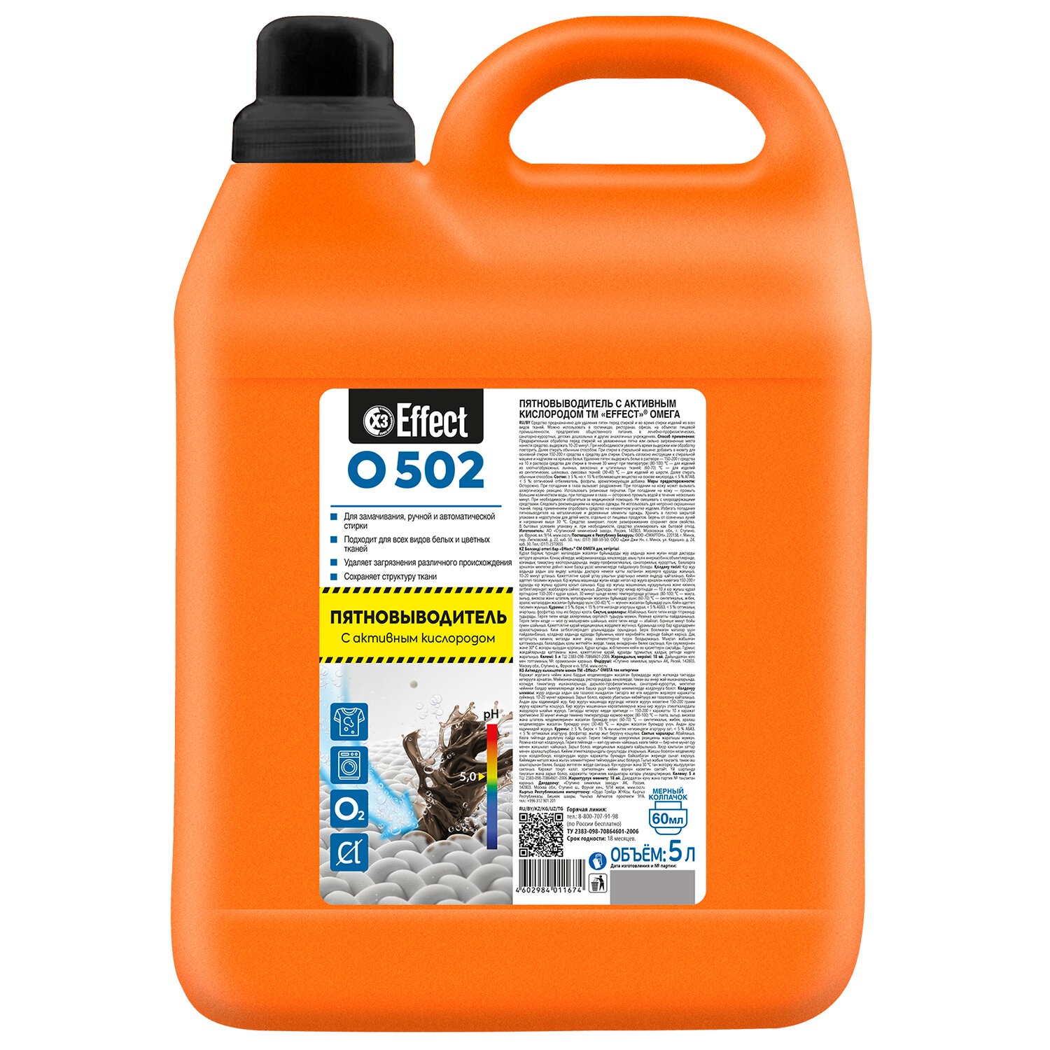- Средство для удаления пятен 5 кг, EFFECT "Omega 502", с активным кислородом, универсальное, 10735