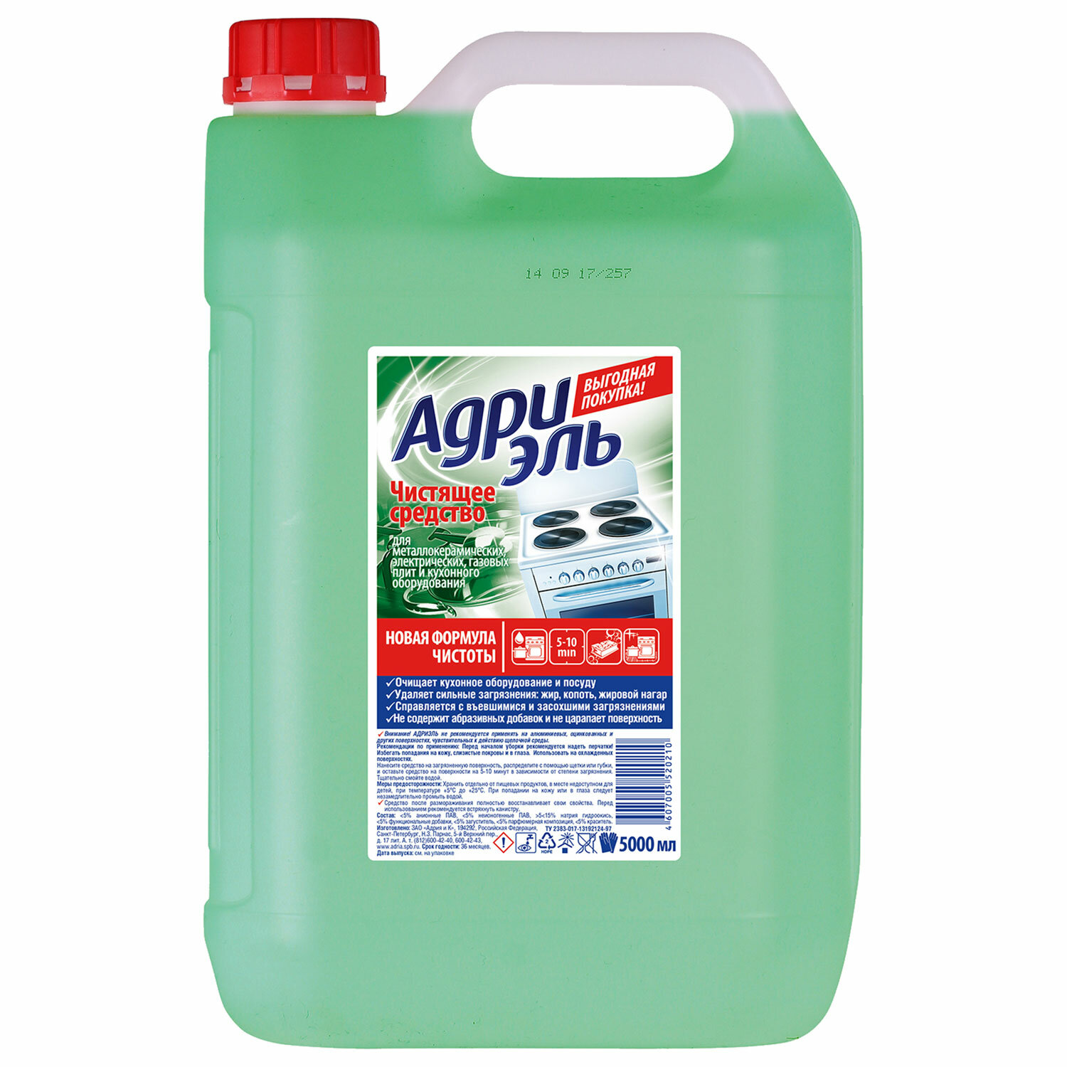 - Гель чистящий для плит и кухонного оборудования 5 л, АДРИЭЛЬ, 4607005520210