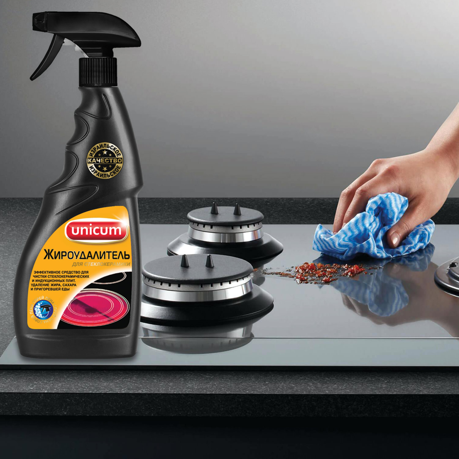- Средство для чистки плит, духовок и стеклокерамики 500 мл, UNICUM (Уникум), спрей, 300049