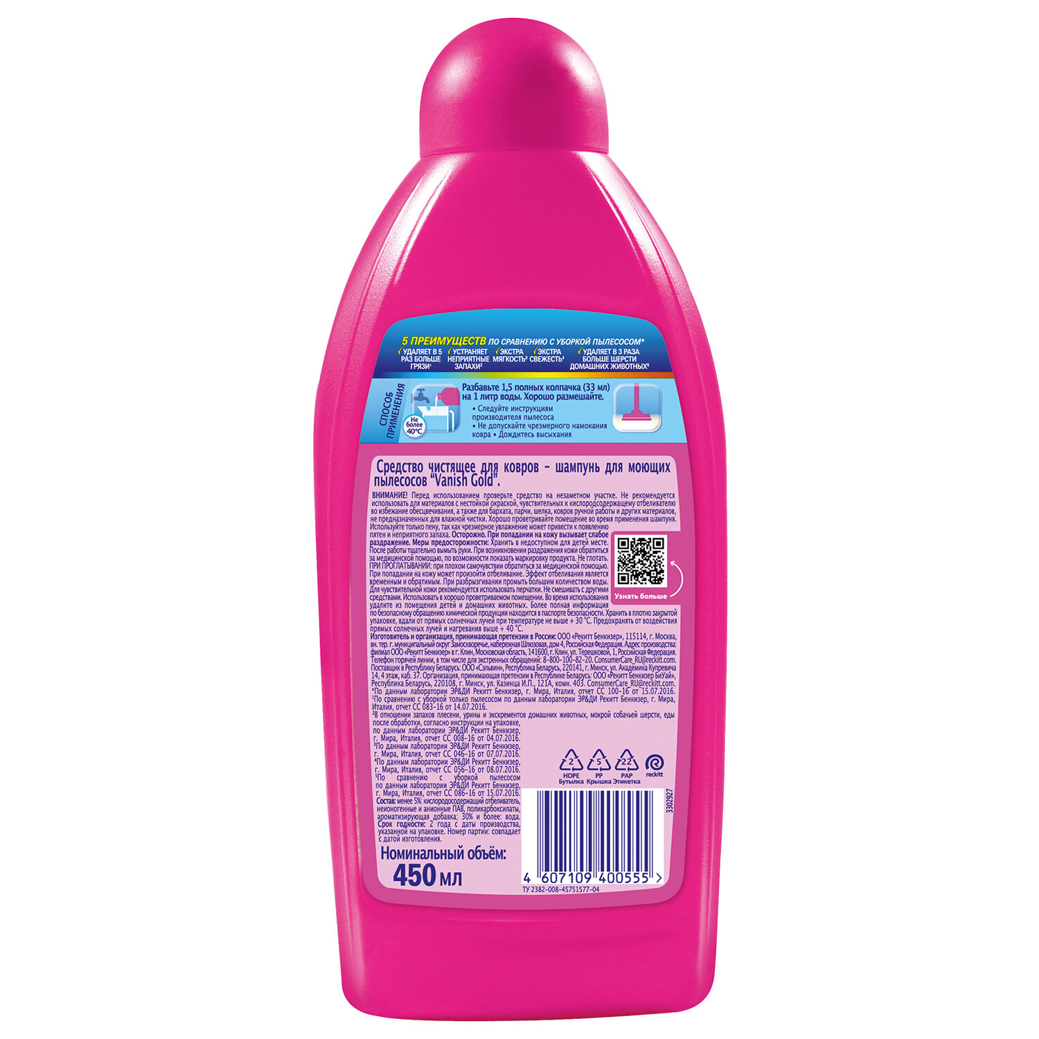 Средство для чистки ковров 450 мл VANISH (Ваниш) GOLD, для моющих пылесосов, 3038214
