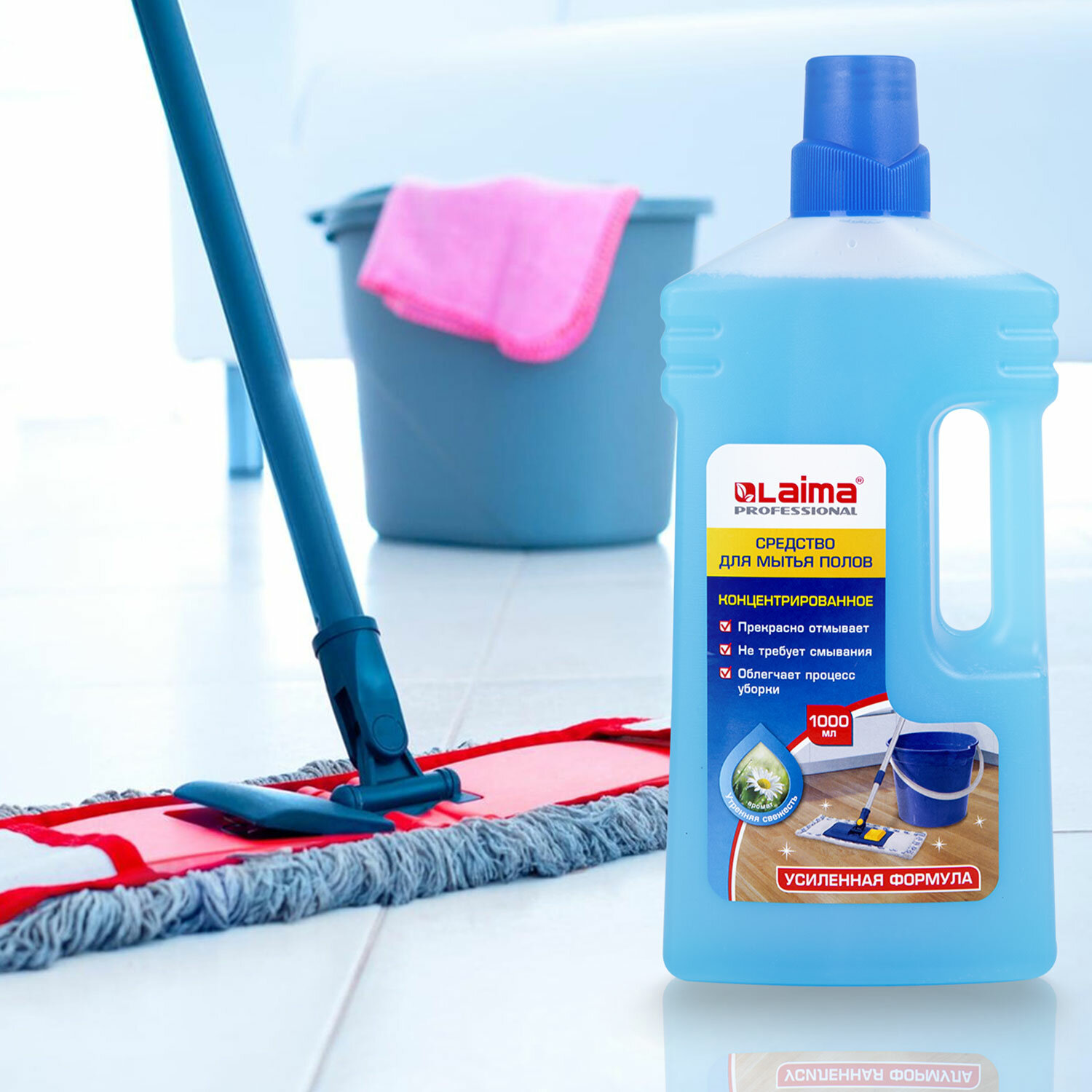 - Средство для мытья пола 1 л, LAIMA PROFESSIONAL концентрат, "Утренняя свежесть", усиленная формула, 604796