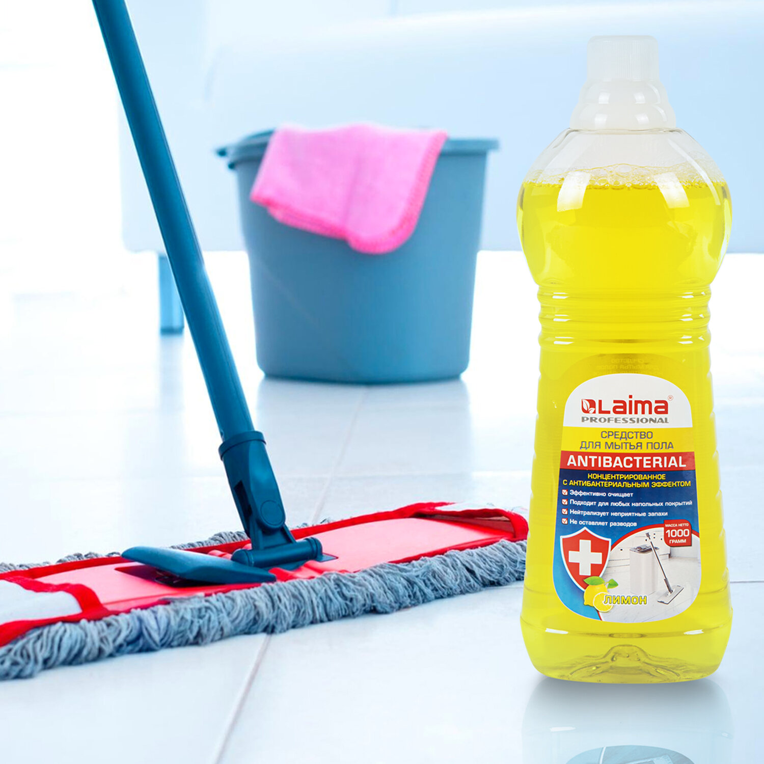 - Средство для мытья пола и стен 1 кг LAIMA PROFESSIONAL концентрированное, "Антибактериальный эффект. Лимон", 607967
