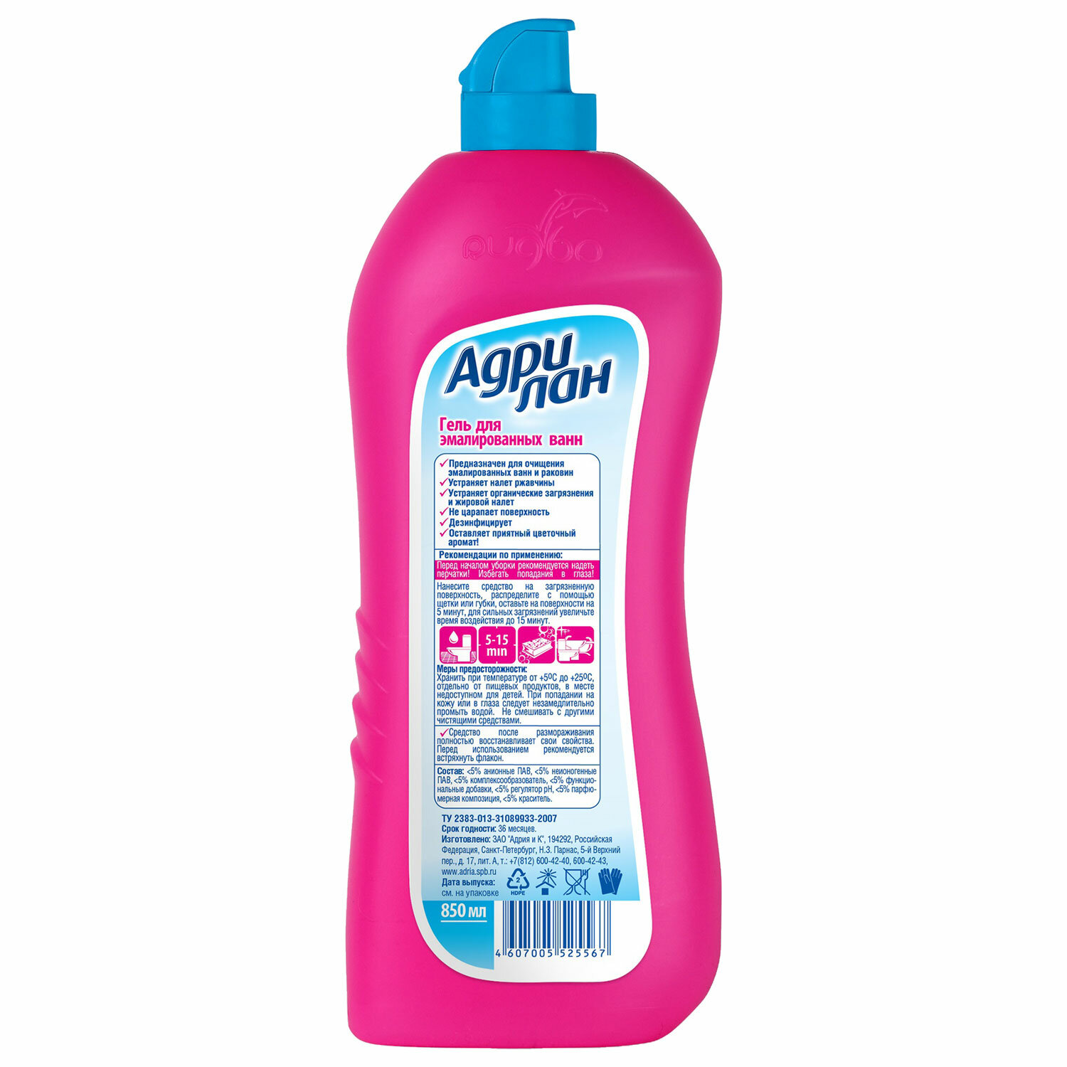- Гель для чистки эмалированных ванн 850 мл, АДРИЛАН, 4607005525567